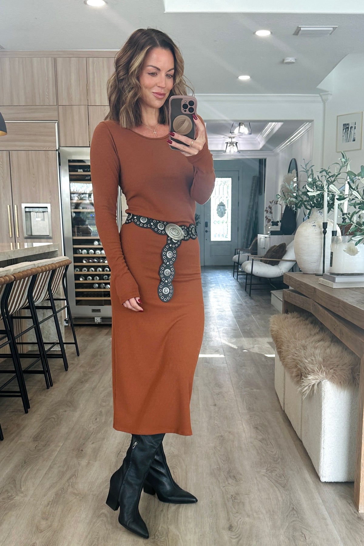 Get ready to turn heads in this ASC Elena Long Sleeve Ribbed Maxi Dress! The custom design hugs your curves, while the ribbed material adds texture. With long sleeves and a side slit, this dress is both stylish and comfortable. The perfect statement piece for any occasion. The model is in the small, the model is in the 2X. True to size fit.