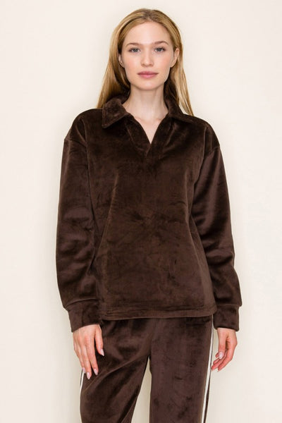 Kai Long Sleeve Solid Knit Top - Brown