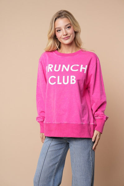 *PREORDER* Brunch Club Long Sleeve Solid Knit Pullover - Fuchsia