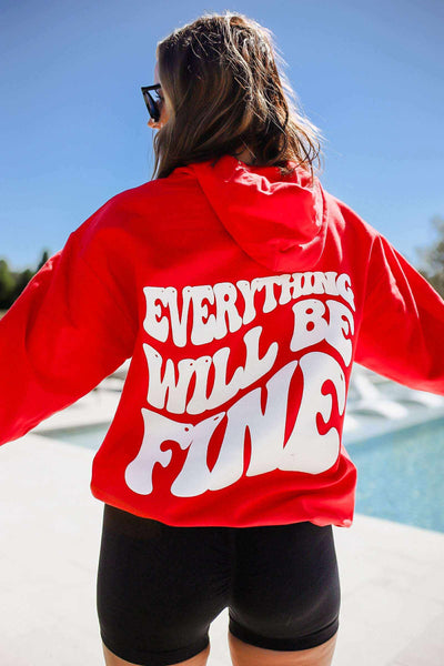 Everything Will Be Fine Hoodie - White on Red