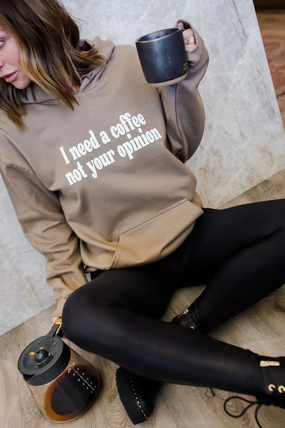 I Need a Coffee Not Your Opinion Hoodie - White on Brown