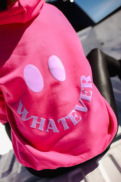 Whatever Smiley Hoodie - Lavender on Hot Pink
