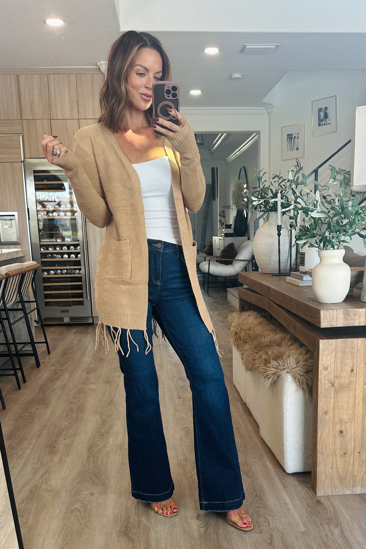 Open Front Fringe Longline Cardigan with Pockets