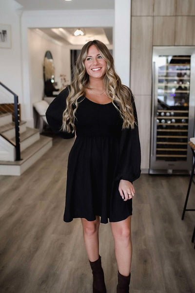 Double Take Texture Smocked Balloon Sleeve Mini Dress