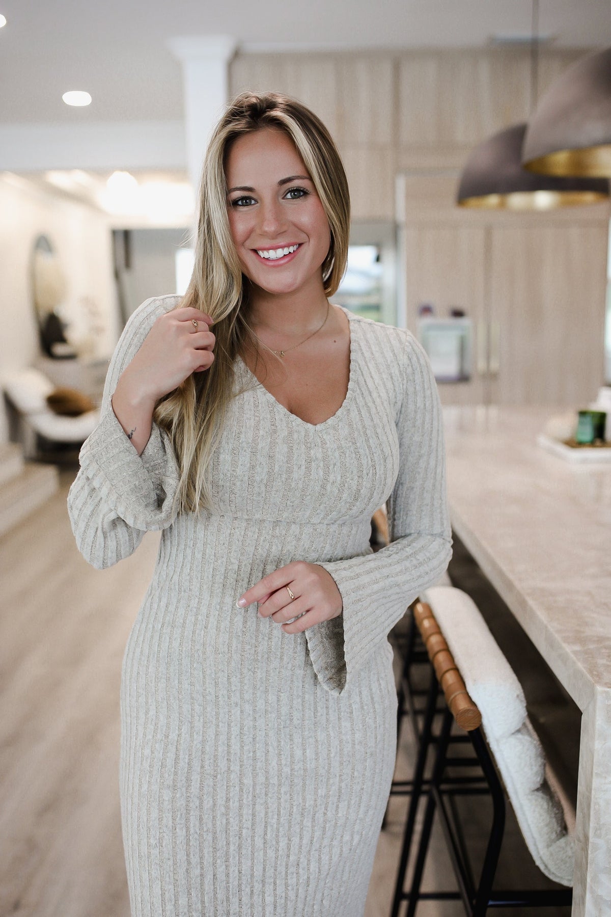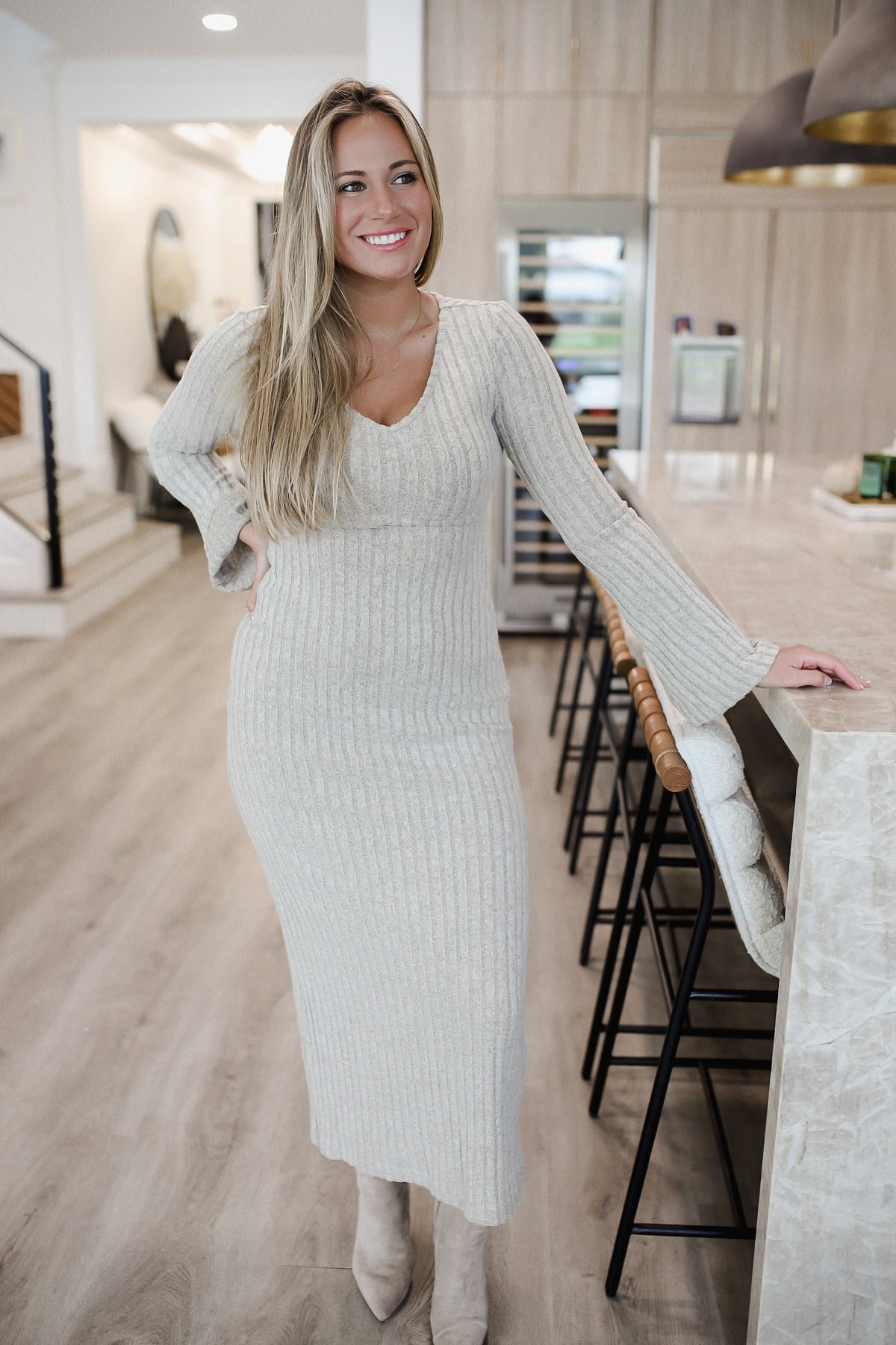 Devine Tied V-Neck Long Sleeve Sweater Dress
