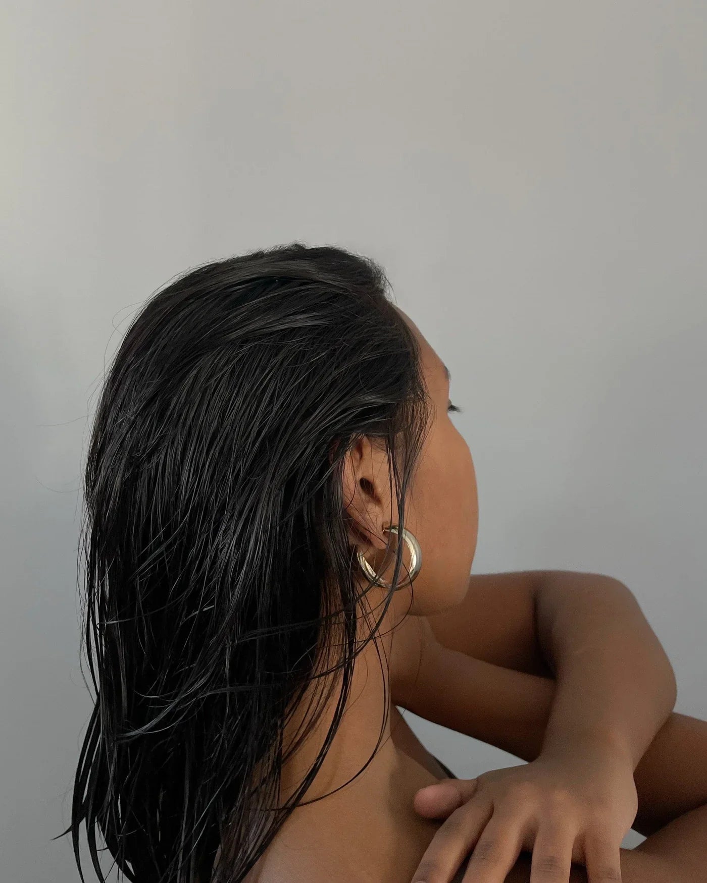 Simone Hoops are domed recycled brass hoops with hypoallergenic surgical steel posts.