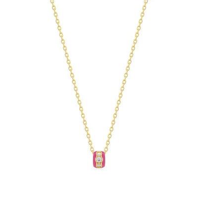 SALE Pink Enamel & Cz Channel Rondelle Necklace