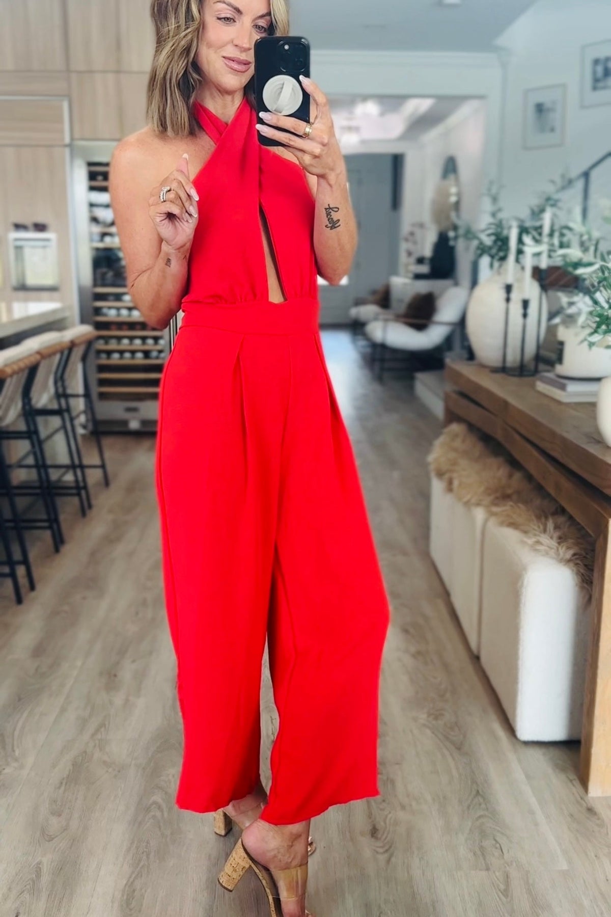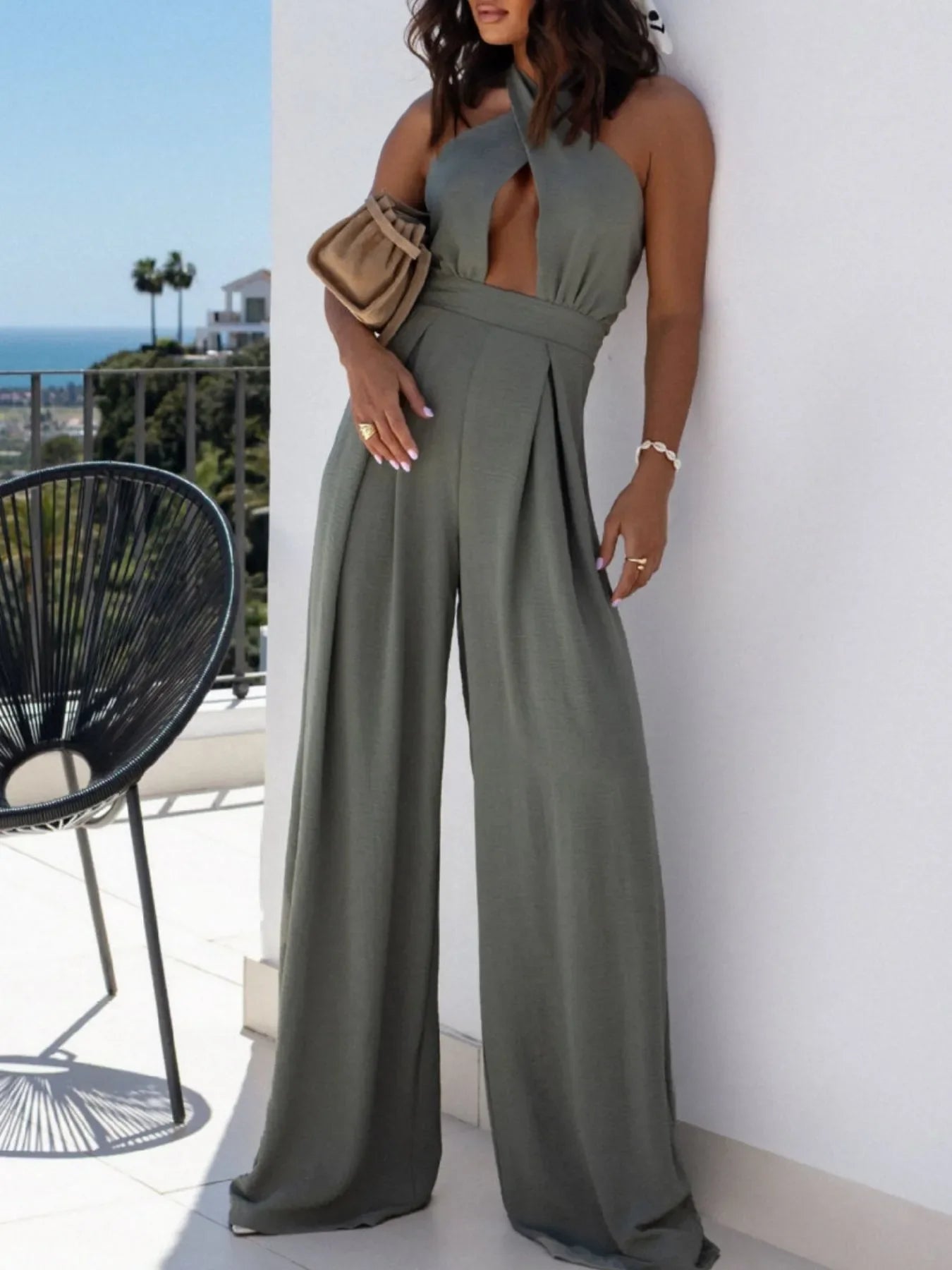 When you want to serve a look without sacrificing comfort, the Wide Leg Cutout Halter Neck Jumpsuit is your go-to power piece. With a sleek halter neckline and bold front cutouts, this jumpsuit brings instant edge and elegance—all in one effortless fit.