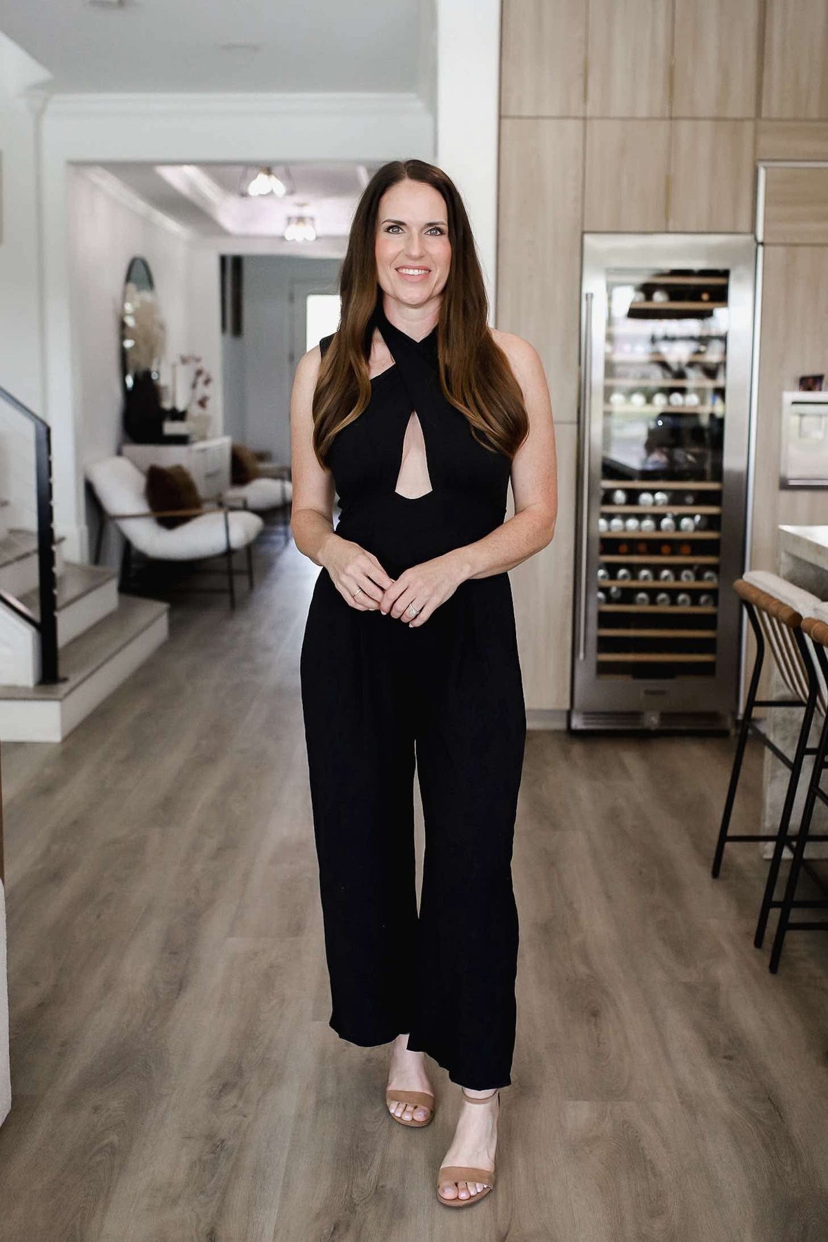 The cinched waist creates a snatched silhouette, while the wide-leg pants add flow and drama with every step. From weddings to rooftop dinners, this one-piece wonder is made to move and made to be seen. The model is in the medium.