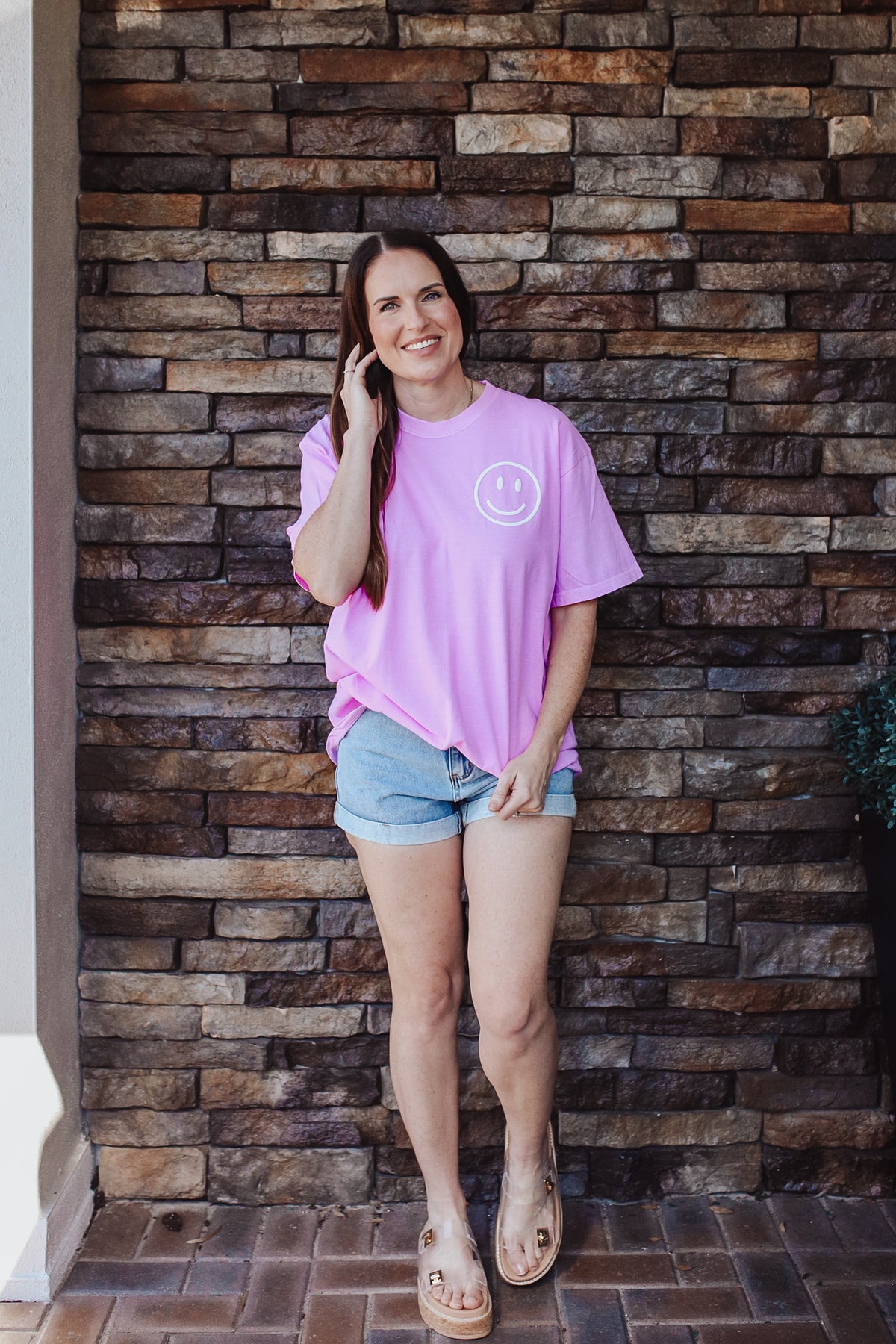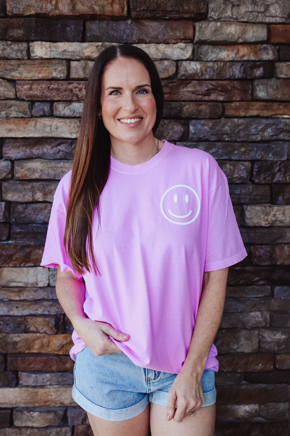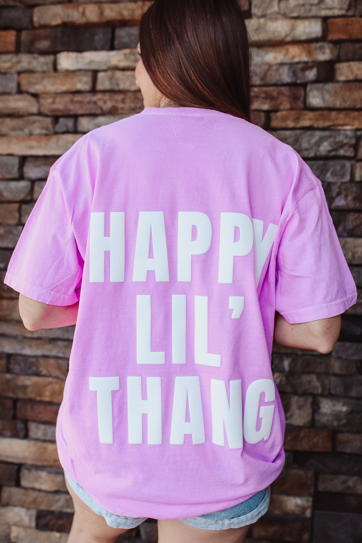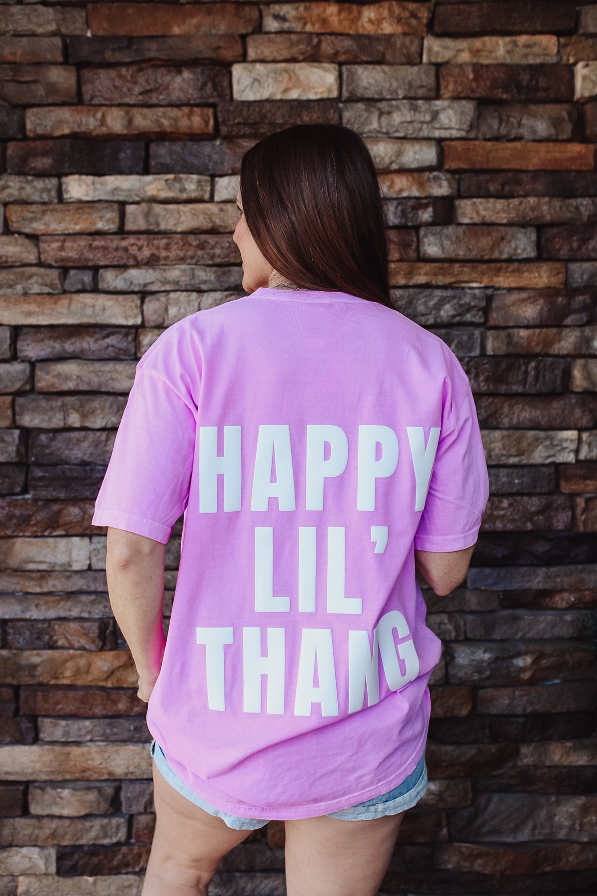 Happy Lil' Thang Short Sleeve Tee - White on Neon Violet