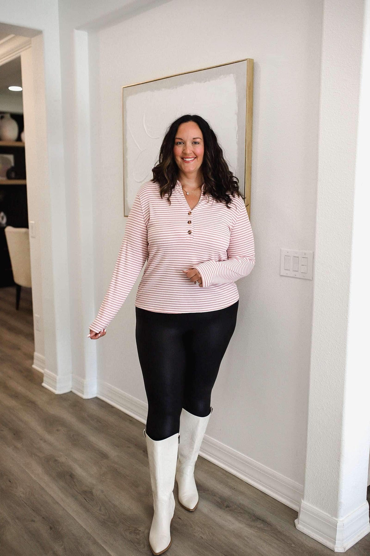 Introducing our must-have Striped Notched Long Sleeve T-Shirt! This playful top features trendy stripes and a unique notched neckline with buttons. Perfect for adding a touch of style to your casual outfits. Upgrade your wardrobe today! The models are in the medium and 2X.
