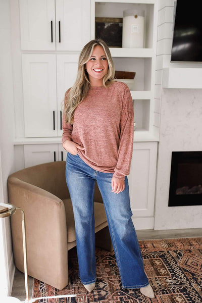 Zenana Exposed Seam Two Tone Ribbed Sweater