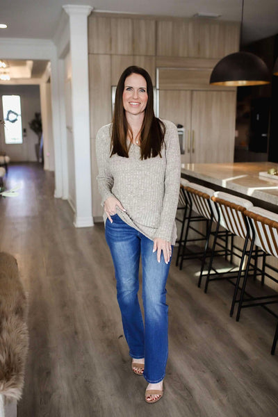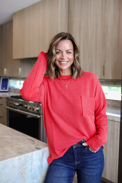 Zenana Long Sleeve Drop Shoulder Rib Top
