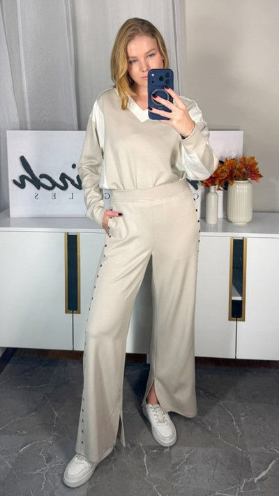 Ribbed V-Neck Long Sleeve Top and Pocketed Pants Set