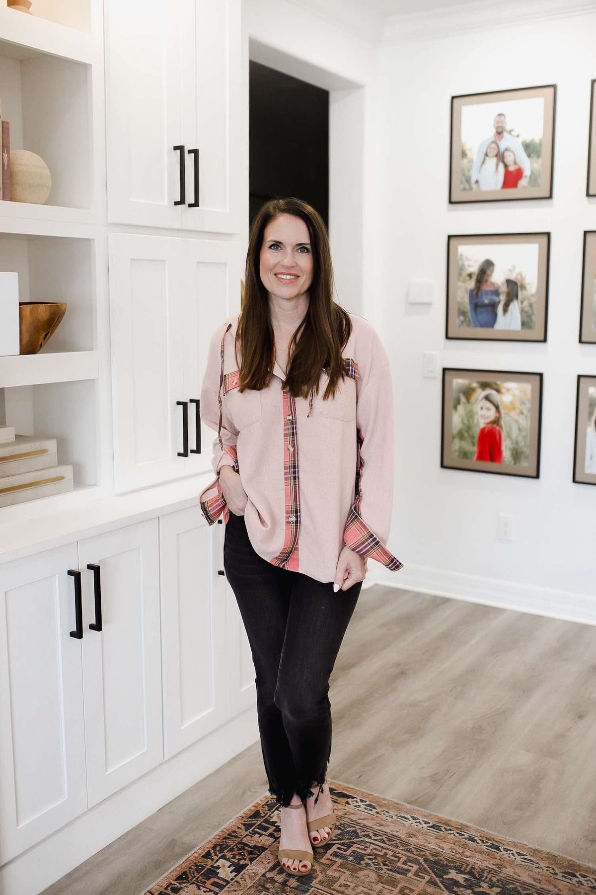 Waffle Knit Plaid Patchwork Drawstring Hooded Shacket