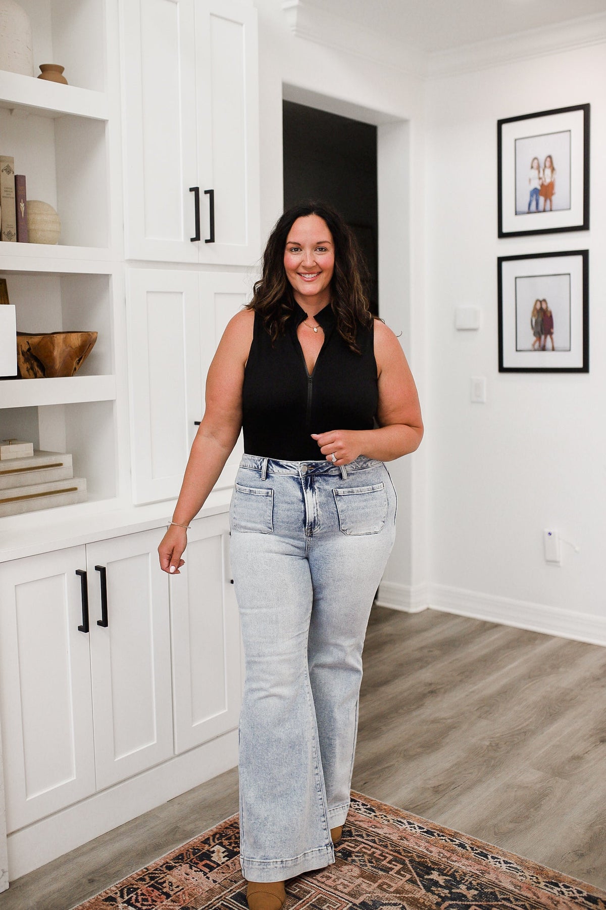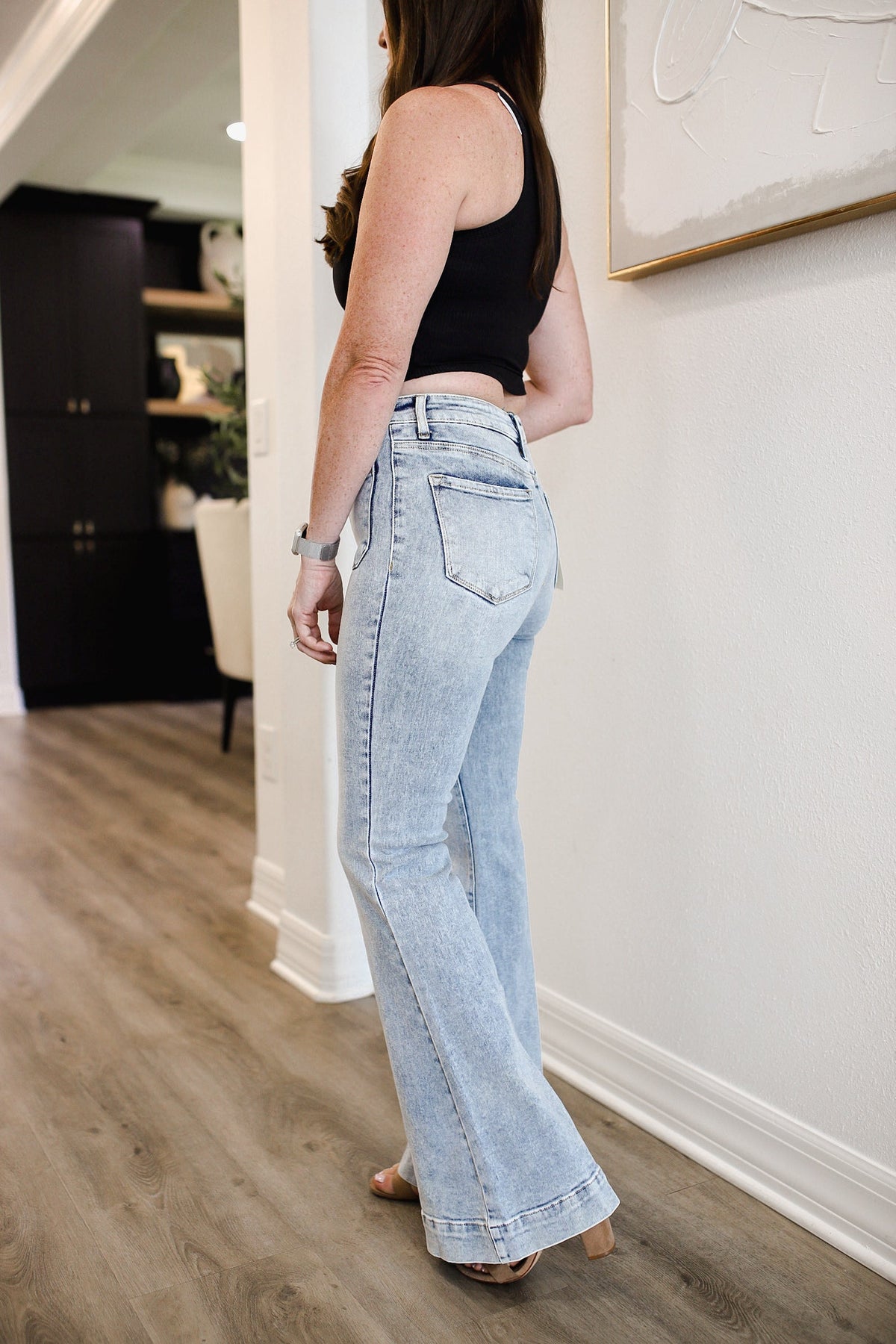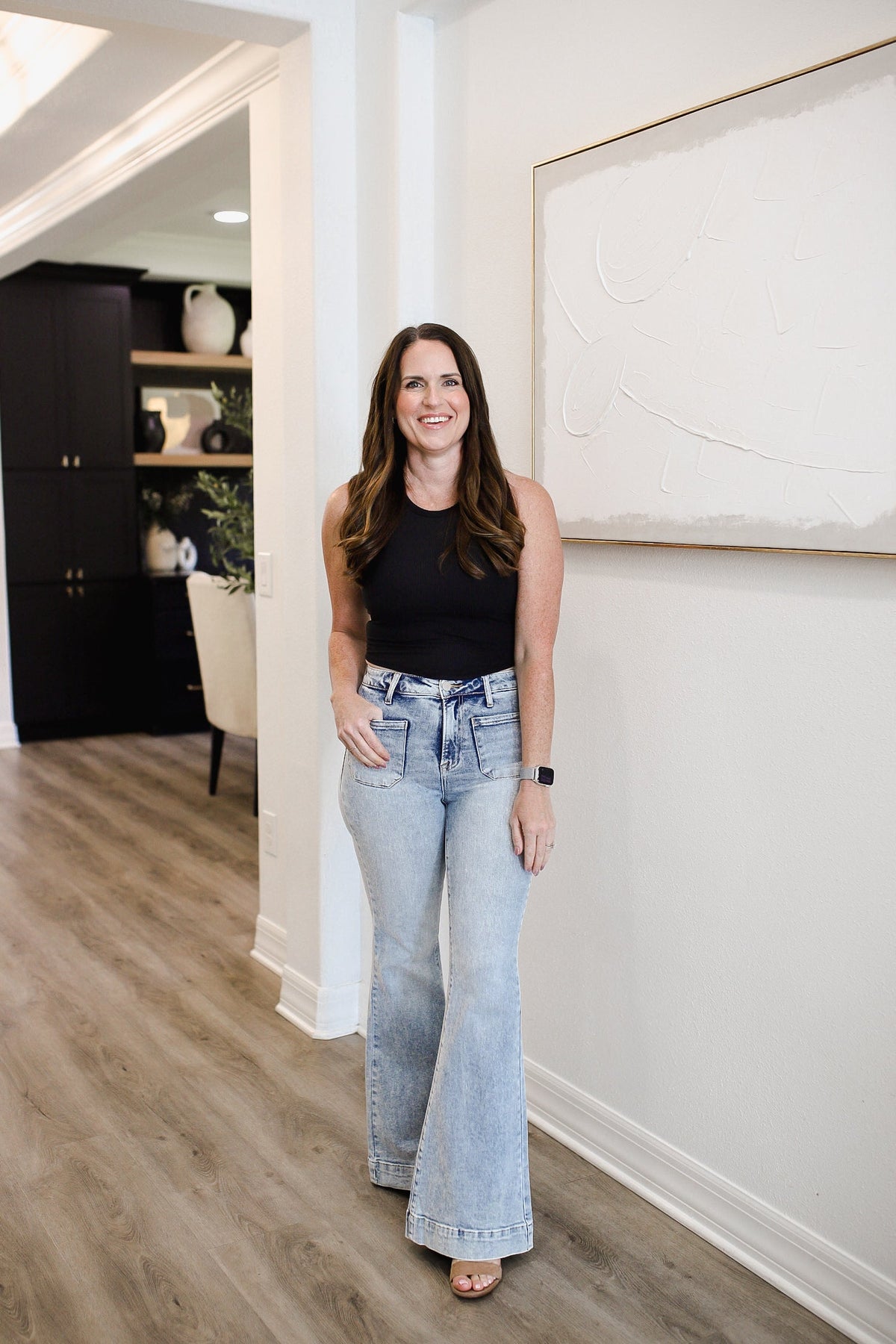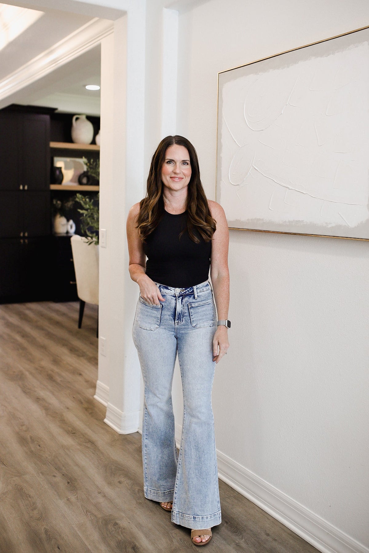 These High Rise Front Patch Pocket Flare Jeans feature a trendy and stylish design. The front patch pockets add a unique touch to the flattering high-rise silhouette. With a flare leg, these jeans offer a contemporary and flattering fit. Perfect for a casual yet fashionable look, these jeans can be dressed up or down. Made from comfortable denim fabric, they are great for all-day wear. Elevate your wardrobe with these versatile and on-trend jeans. The model is a 4, wearing the 3. You can size down one from your even size.