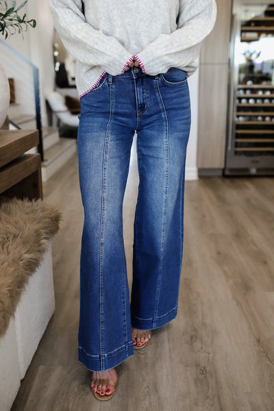 Faye High Rise Full Length Palazzo Jeans Plus/Reg