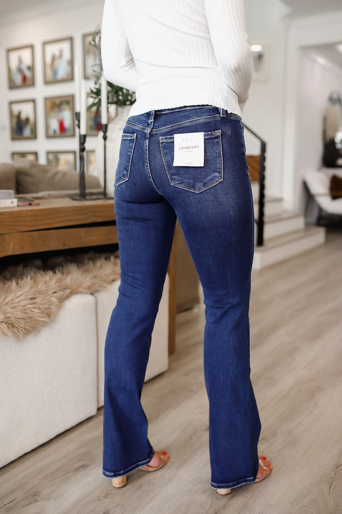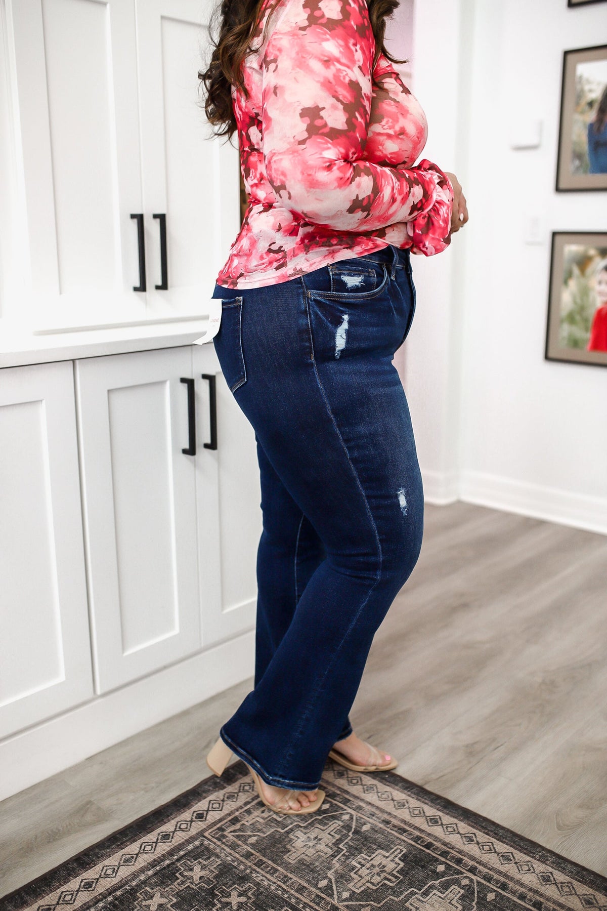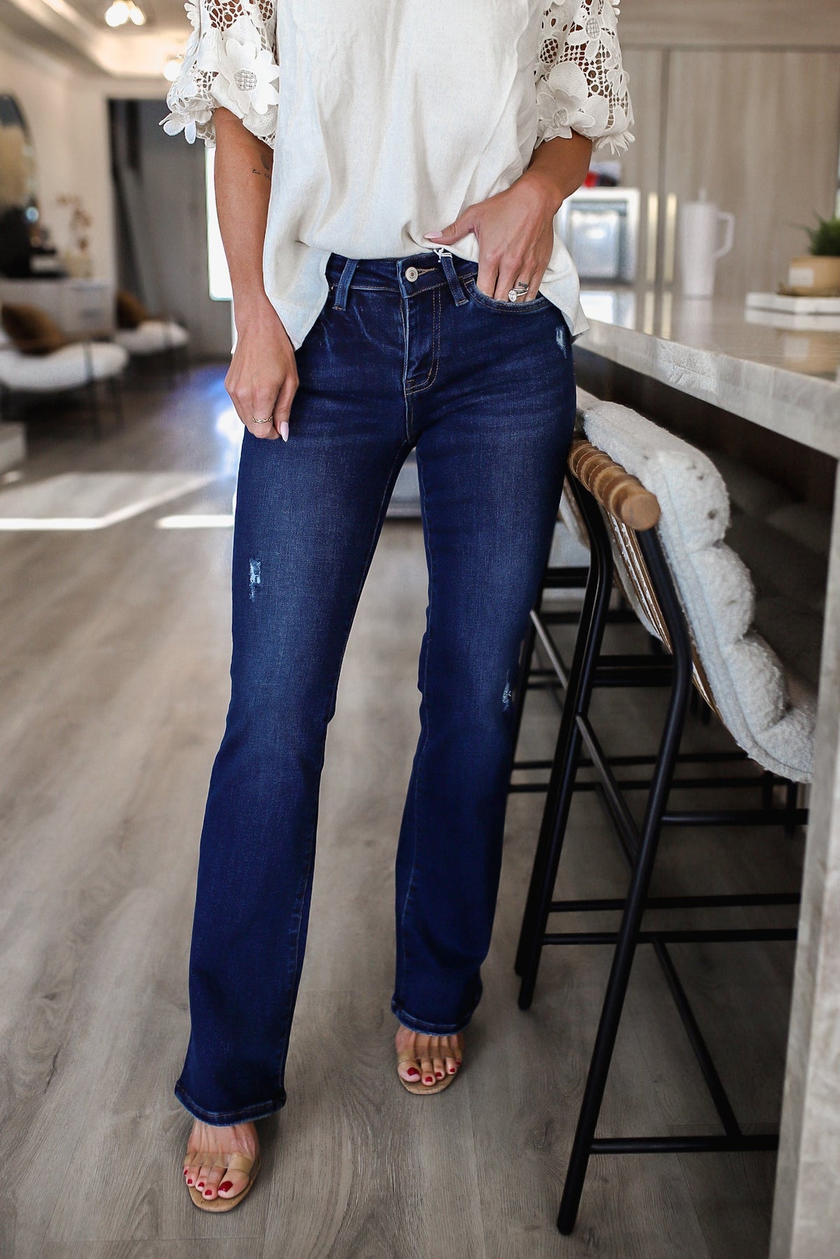 For the chic woman who values timeless style with a touch of modern edge, these lightly distressed dark wash bootcut jeans are an absolute essential. Designed to be worn anytime, anywhere—whether you're stepping out for a stylish brunch or dressing up for a romantic date night—these jeans offer a flattering silhouette that never goes out of style.