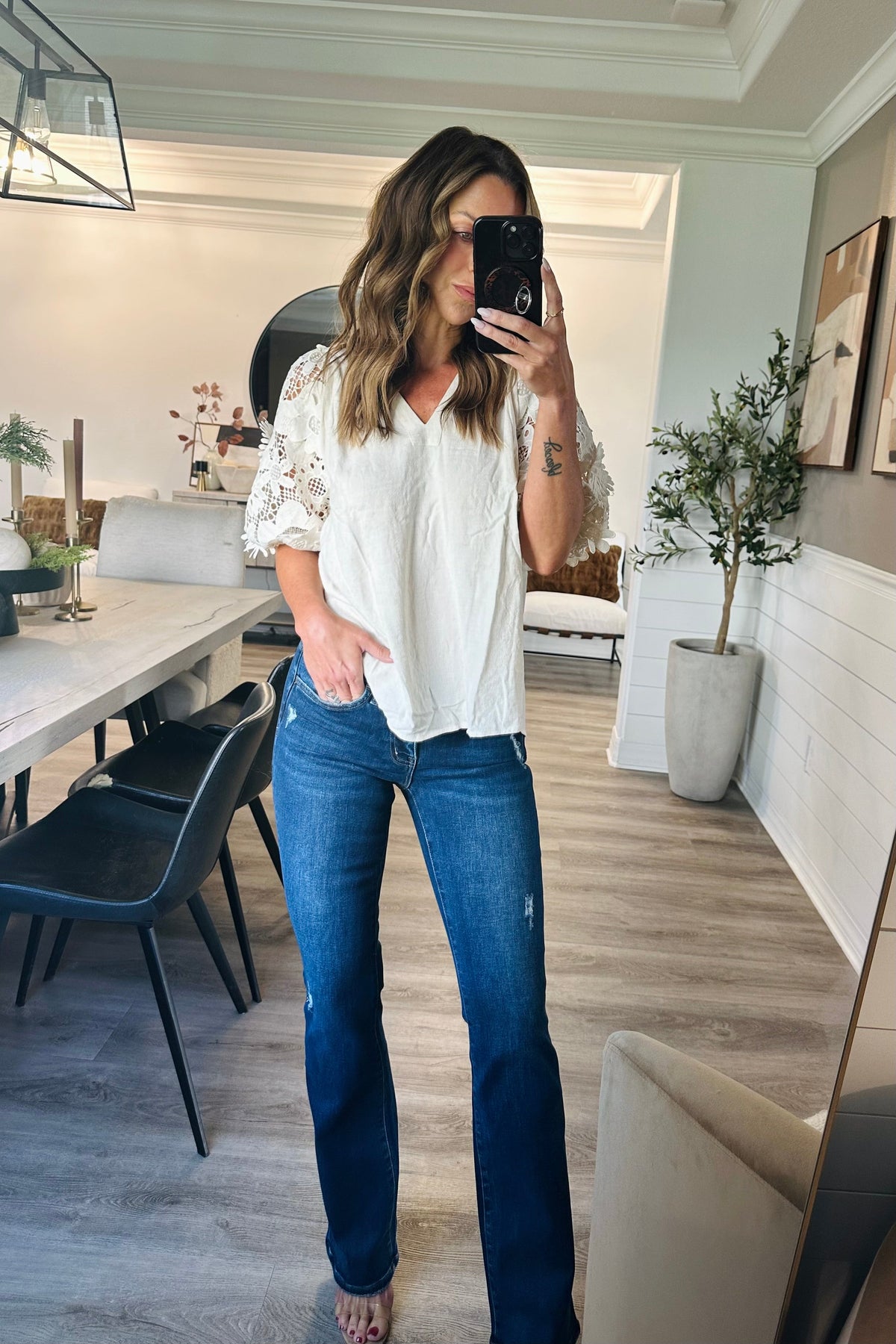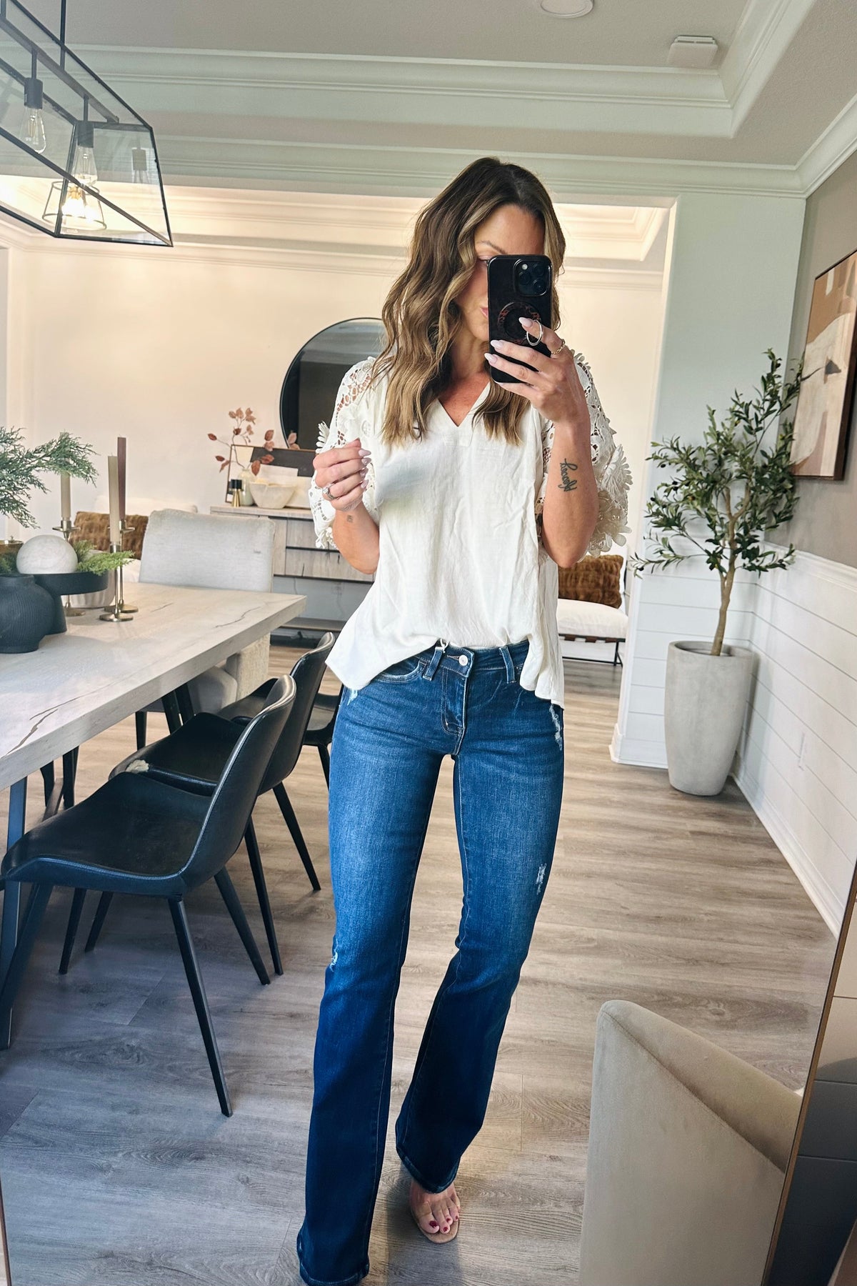 Timeless. Chic. Effortless. These jeans are the ultimate go-to for creating polished yet relaxed looks, no matter the occasion! Paired with Relaxed Rhythm Collared Button Front Top - Ivory.