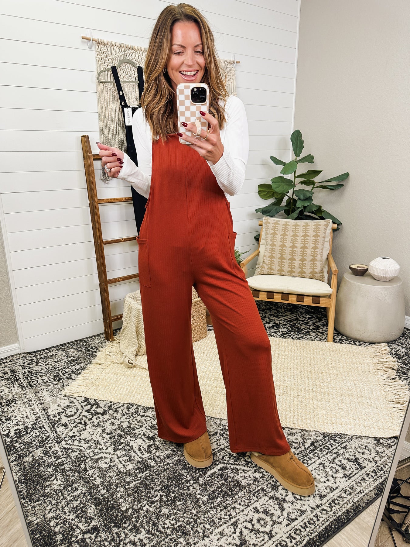 Step up your style game with these trendy double take wide strap overalls! Crafted with a soft and stretchy fabric, they come in assorted colors to match any mood. Perfect for a day out, these overalls are complete with handy pockets for all your essentials. Look good, feel good! The model is in the medium.
