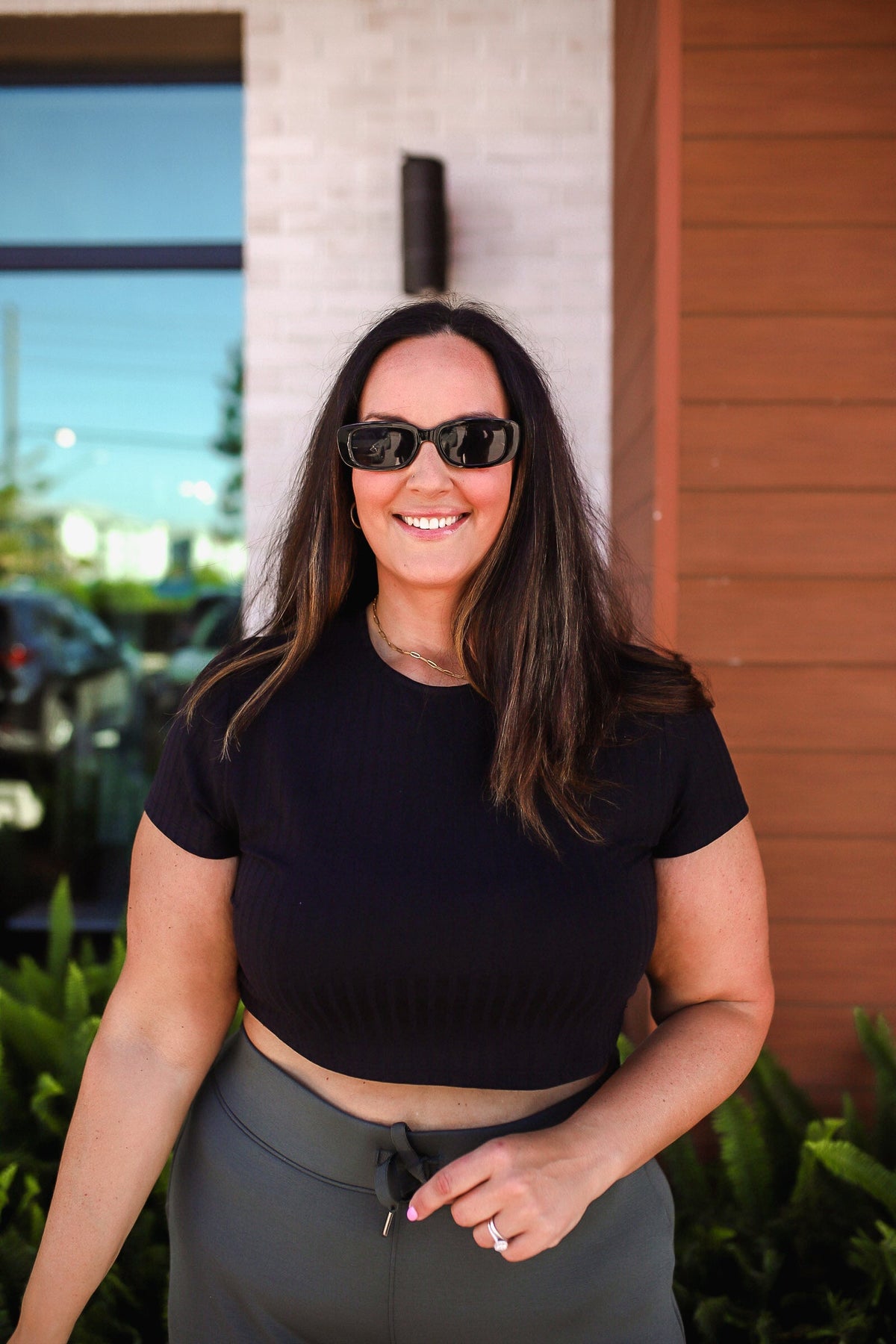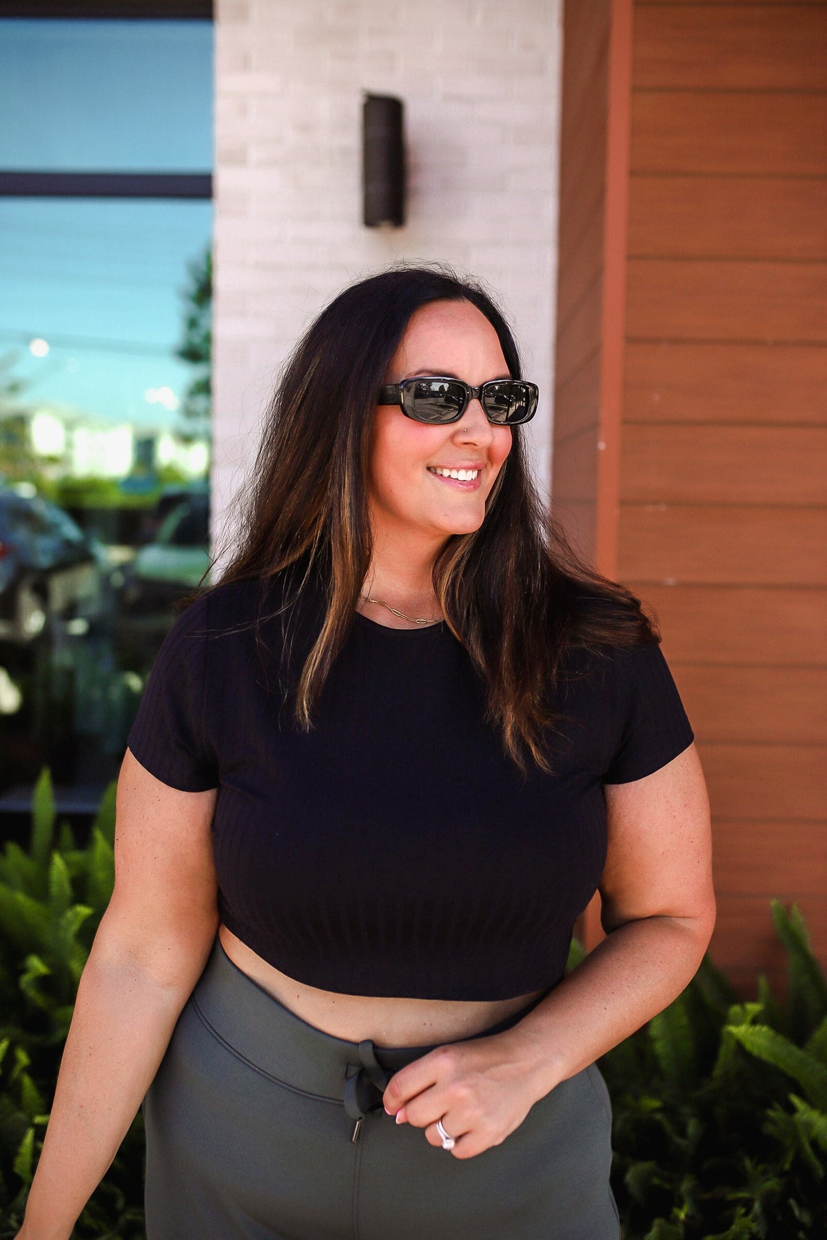 This soft, ribbed short sleeve tee is perfect for everyday wear. Its round neck design and comfortable fit make it a versatile addition to any wardrobe. Stay stylish and comfortable with our Basic Bae Full Size Ribbed Round Neck Short Sleeve T-Shirt! Carina is in the medium.