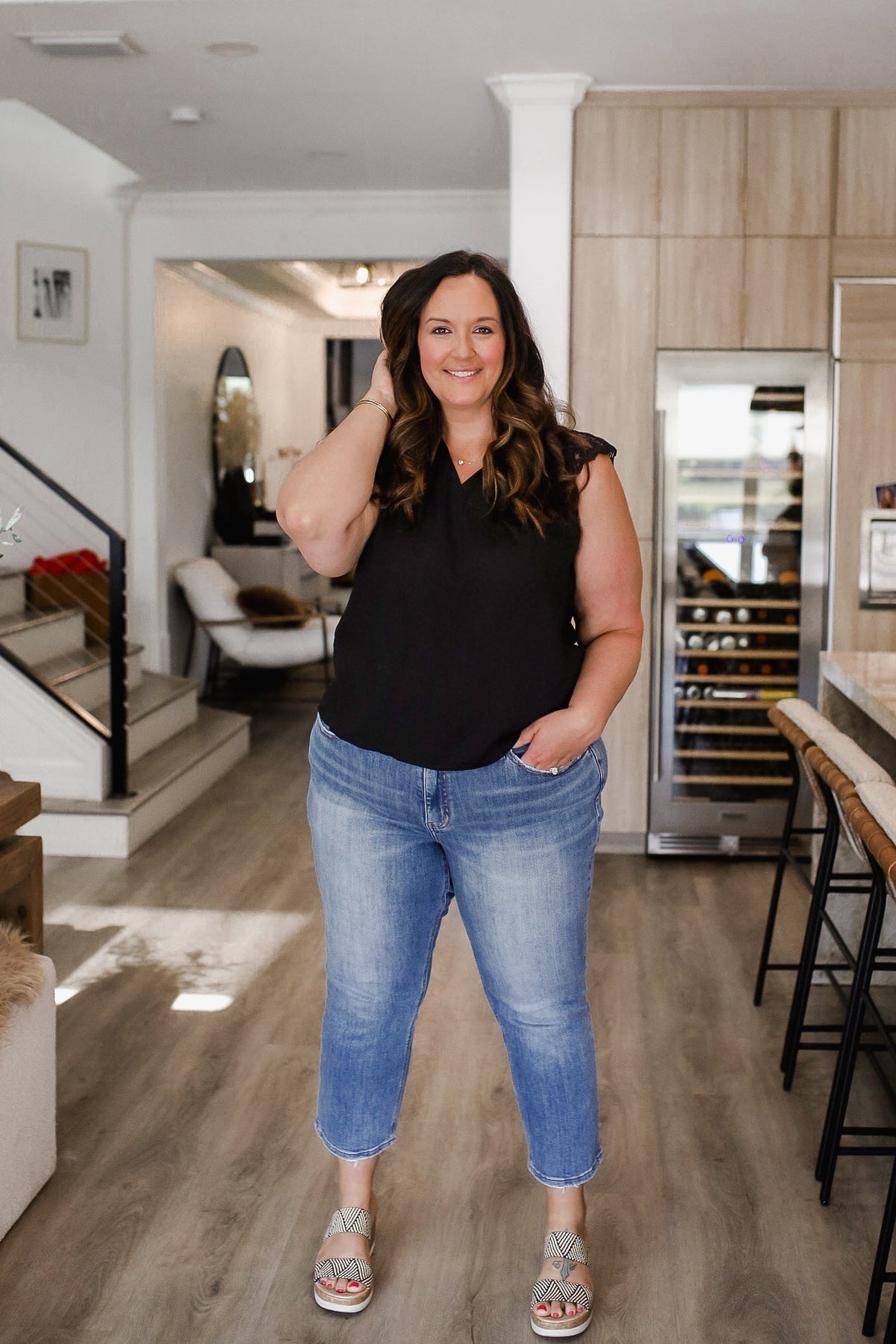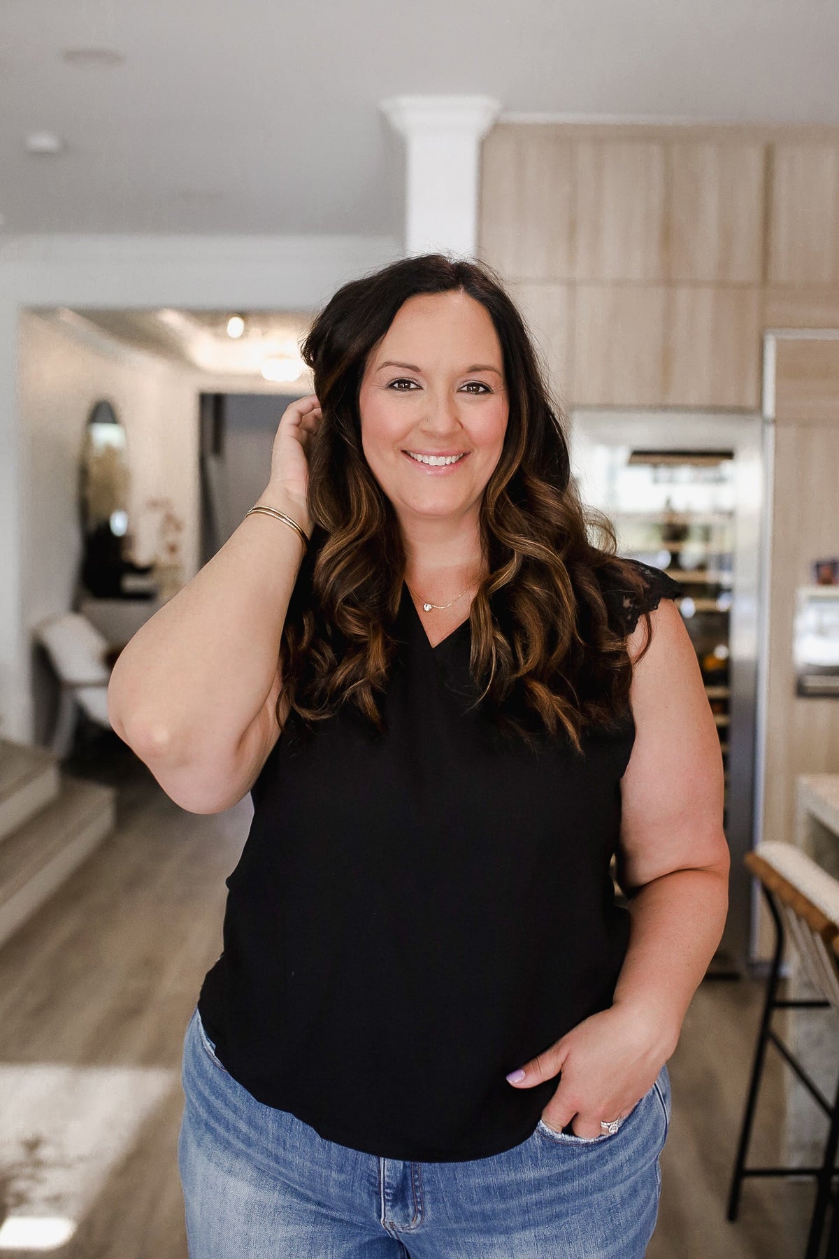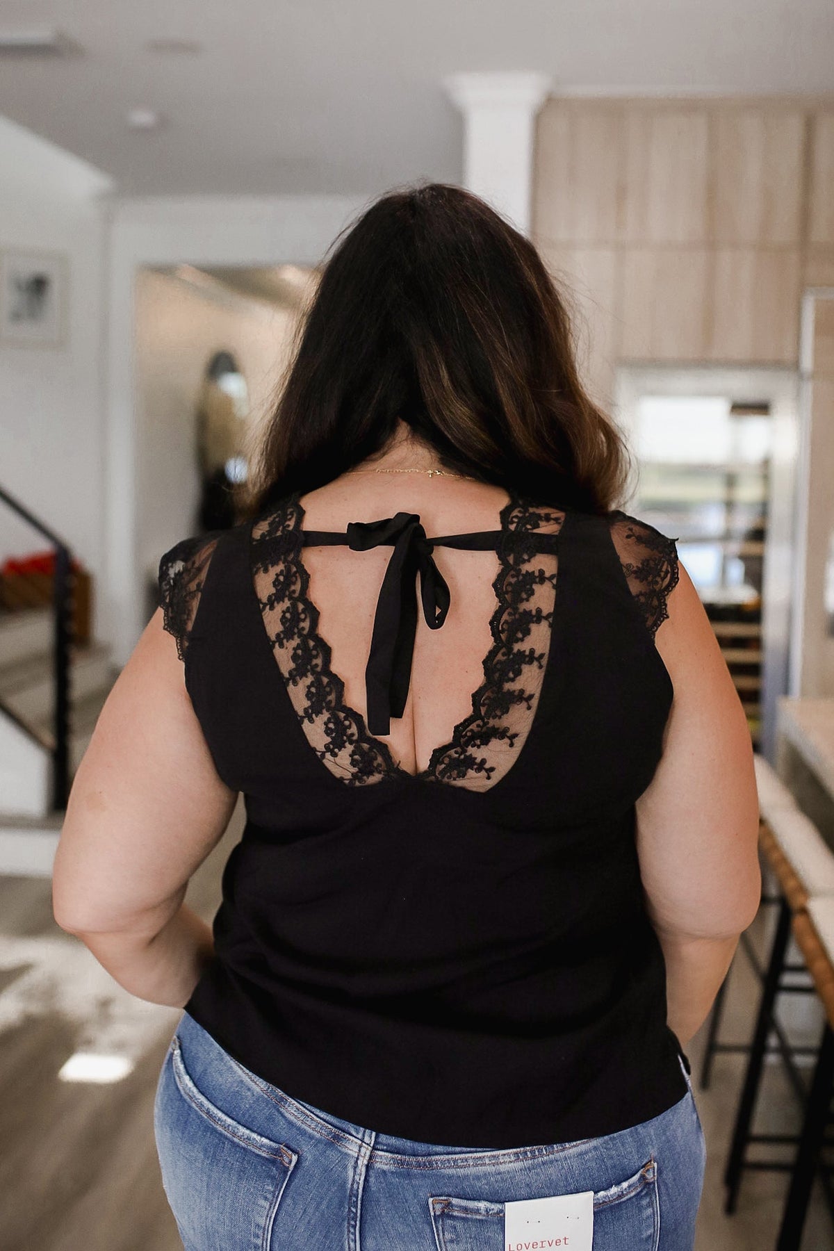 Lace Detail V-Neck Cap Sleeve T-Shirt