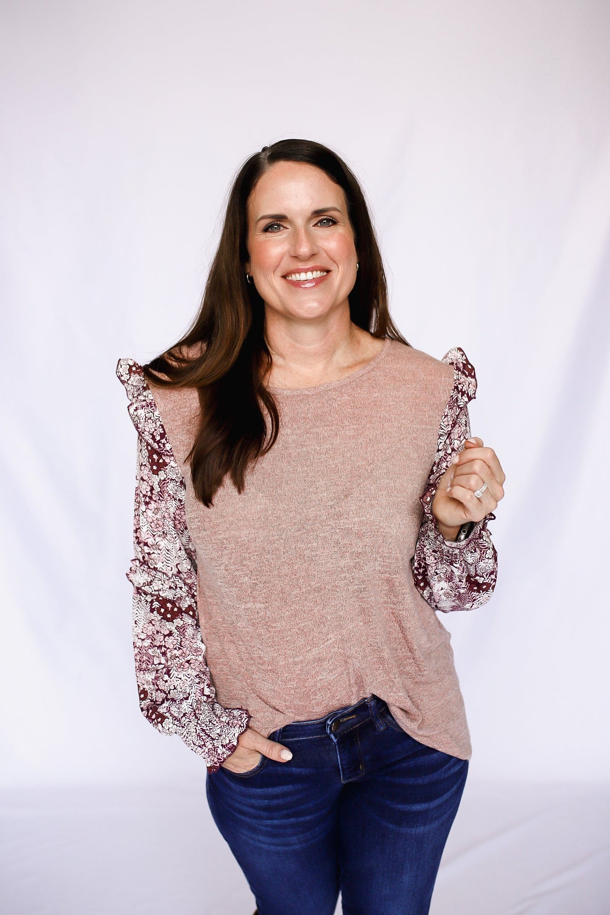 Heathered Floral Frill Lantern Sleeve Blouse