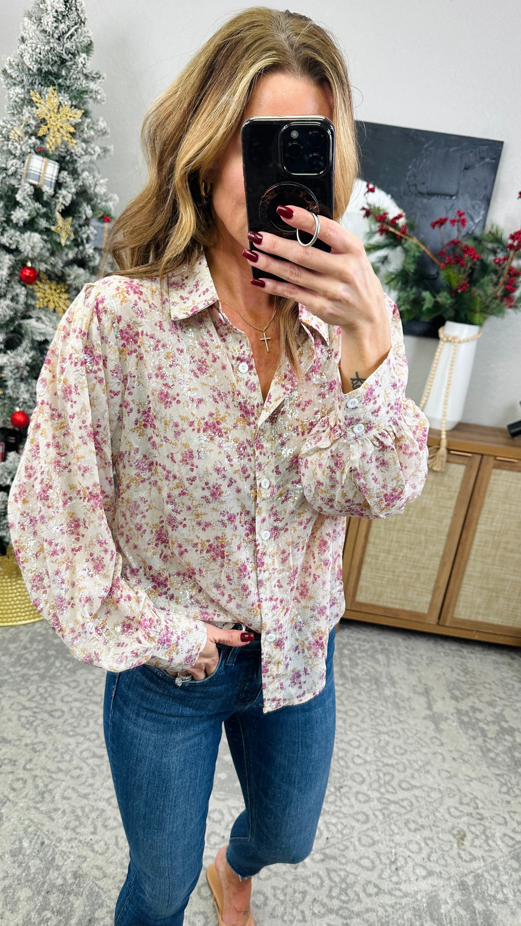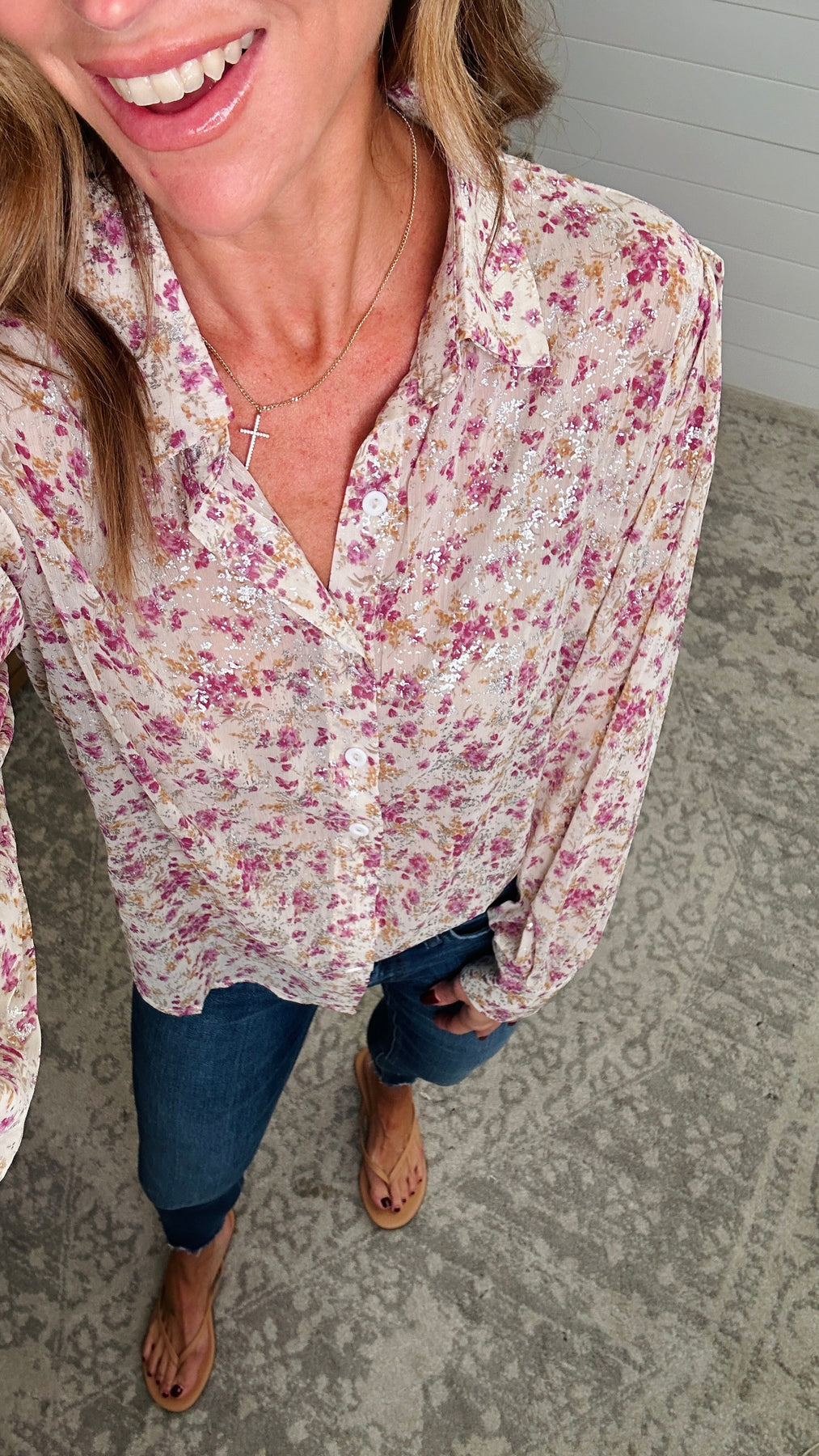 Add a touch of playful print to your wardrobe with this Printed Collared Neck Long Sleeve Shirt! The fun and unique design will bring a pop of personality to any outfit. Stay stylish and comfortable with its durable and versatile features. Perfect for any fashion-forward individual! (Not your basic button-up!) Paired with Alana jeans.