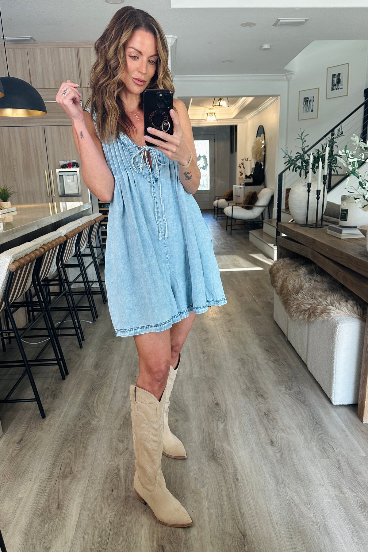 Made from soft, lightweight denim, it’s comfy enough for all-day wear but stylish enough to turn heads. Pair it with sneakers for a casual-cute look or throw on some knee high boots for an instant upgrade.