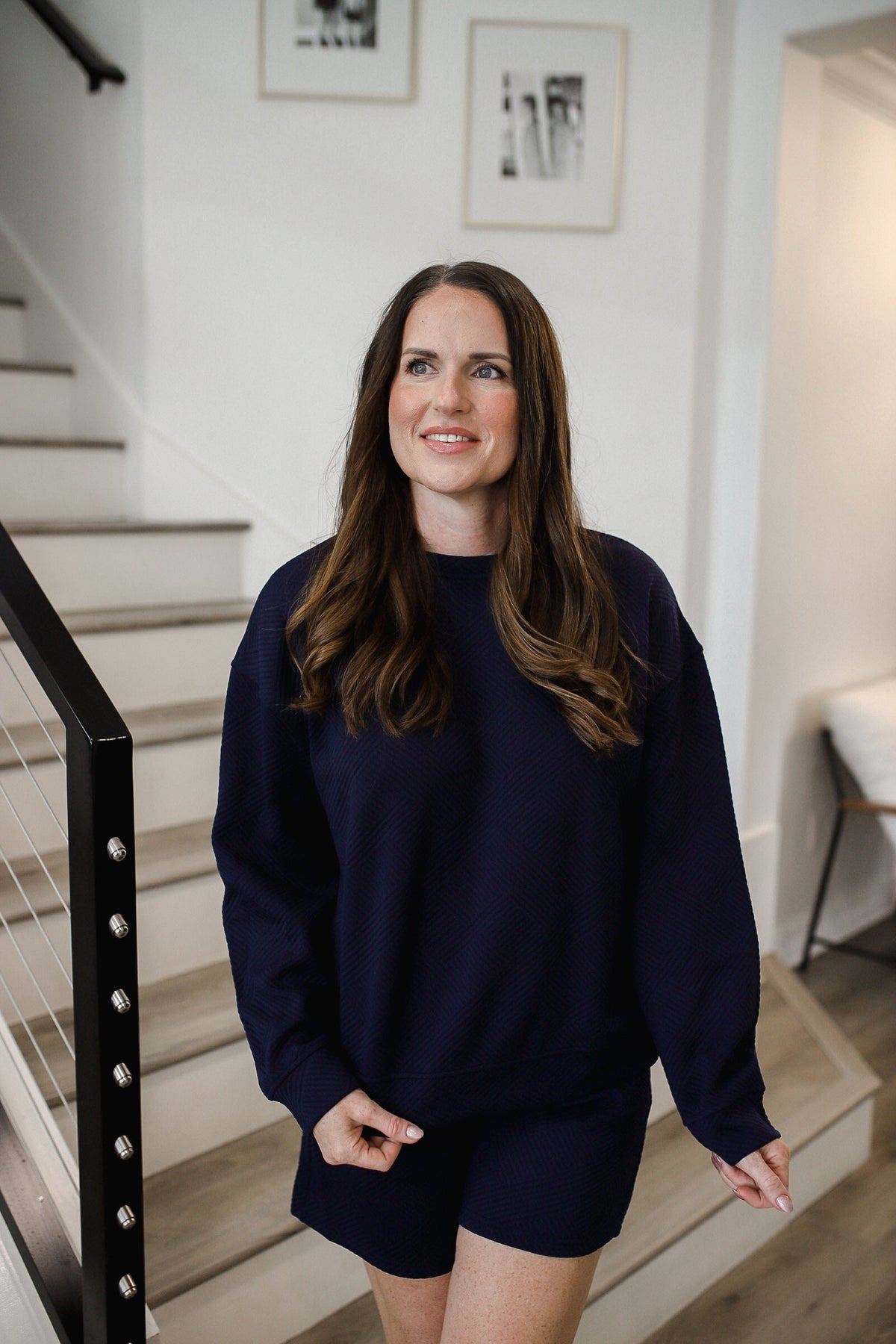 Get ready for double the style with our Double Take Set! This full-size set features a textured long sleeve top and drawstring shorts for a versatile and trendy look. Perfect for lounging or a casual day out. The models are in the medium and 2X.
