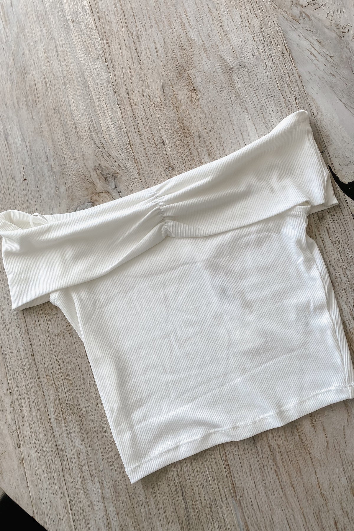 This playful blue crop top features a trendy off-the-shoulder design with a ruched front that adds a flirty touch. Its solid color makes it easy to pair with your favorite bottoms for a fun, stylish look perfect for sunny days or casual nights out.