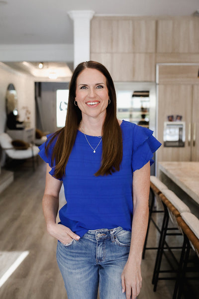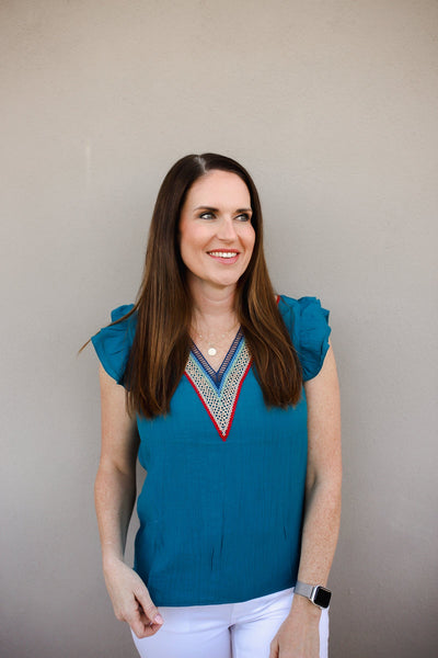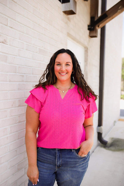 Polka Dot V-Neck Ruffle Cap Sleeve Blouse