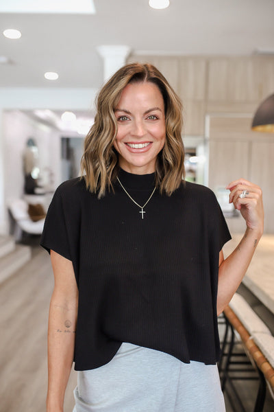 Zenana Viscose Mock Neck Short Sleeve Boxy Sweater