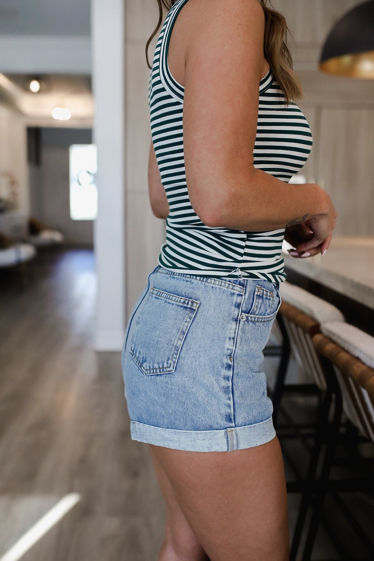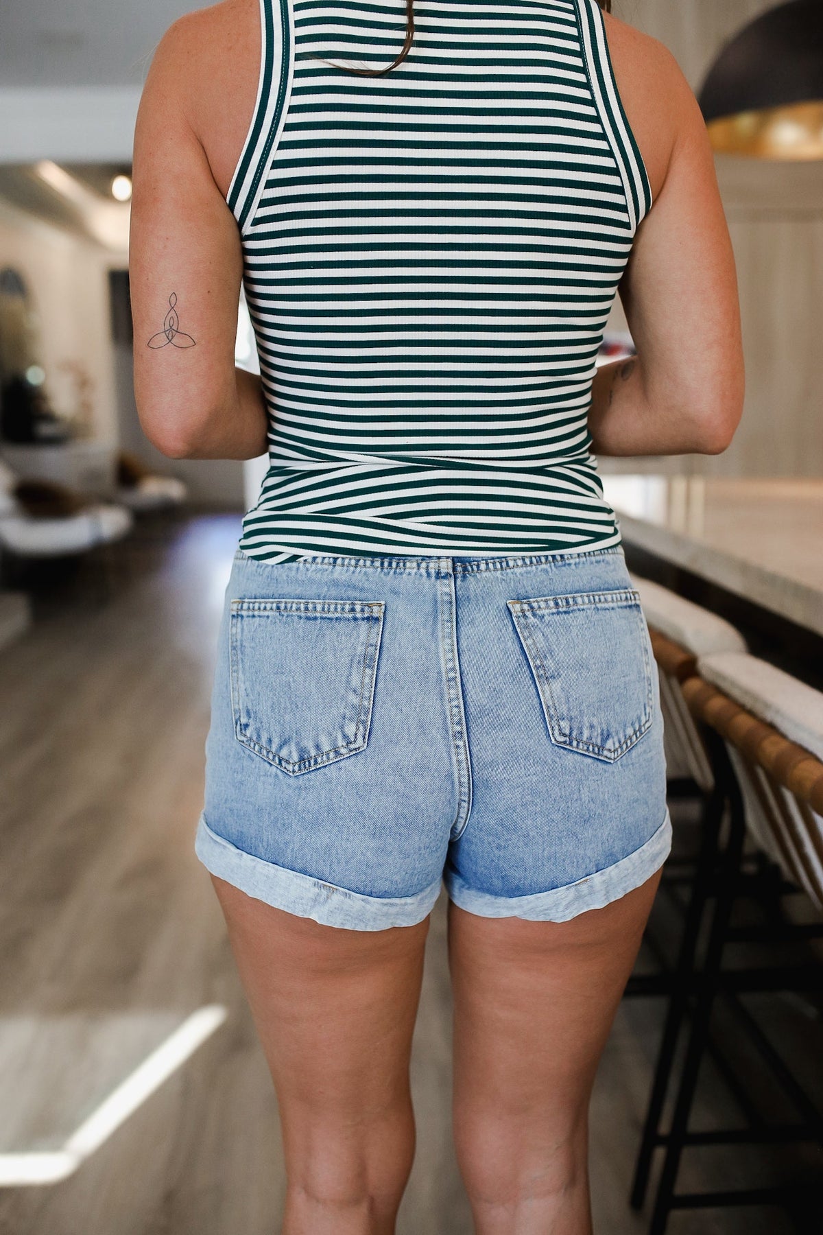 Classic, cool, and a total must-have—these High Waist Denim Shorts are your warm-weather staple. Made from structured, non-stretch denim, they hold their shape while giving you that vintage-inspired fit you love. The high-rise waist flatters your figure, and the cuffed hem adds just the right amount of laid-back polish.