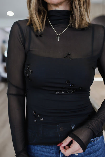 Sheer Luck Sequin Long Sleeve Top