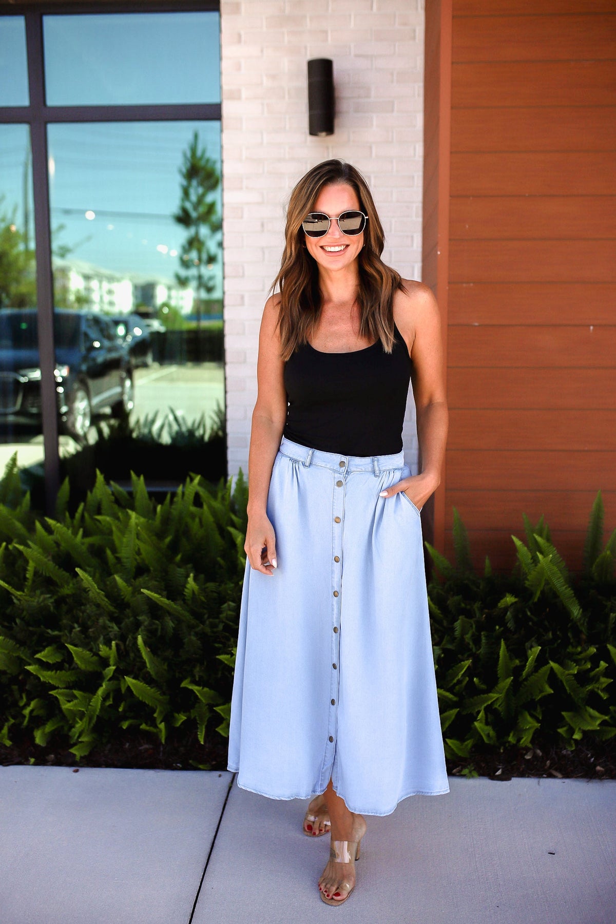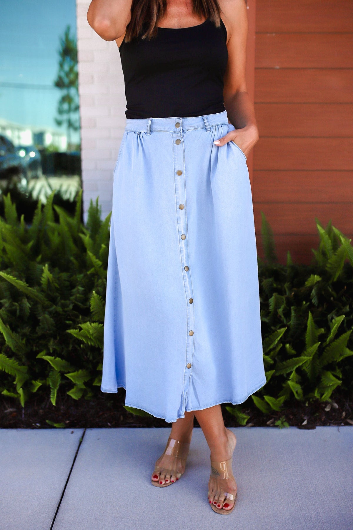 Snap Down High Waist Denim Skirt