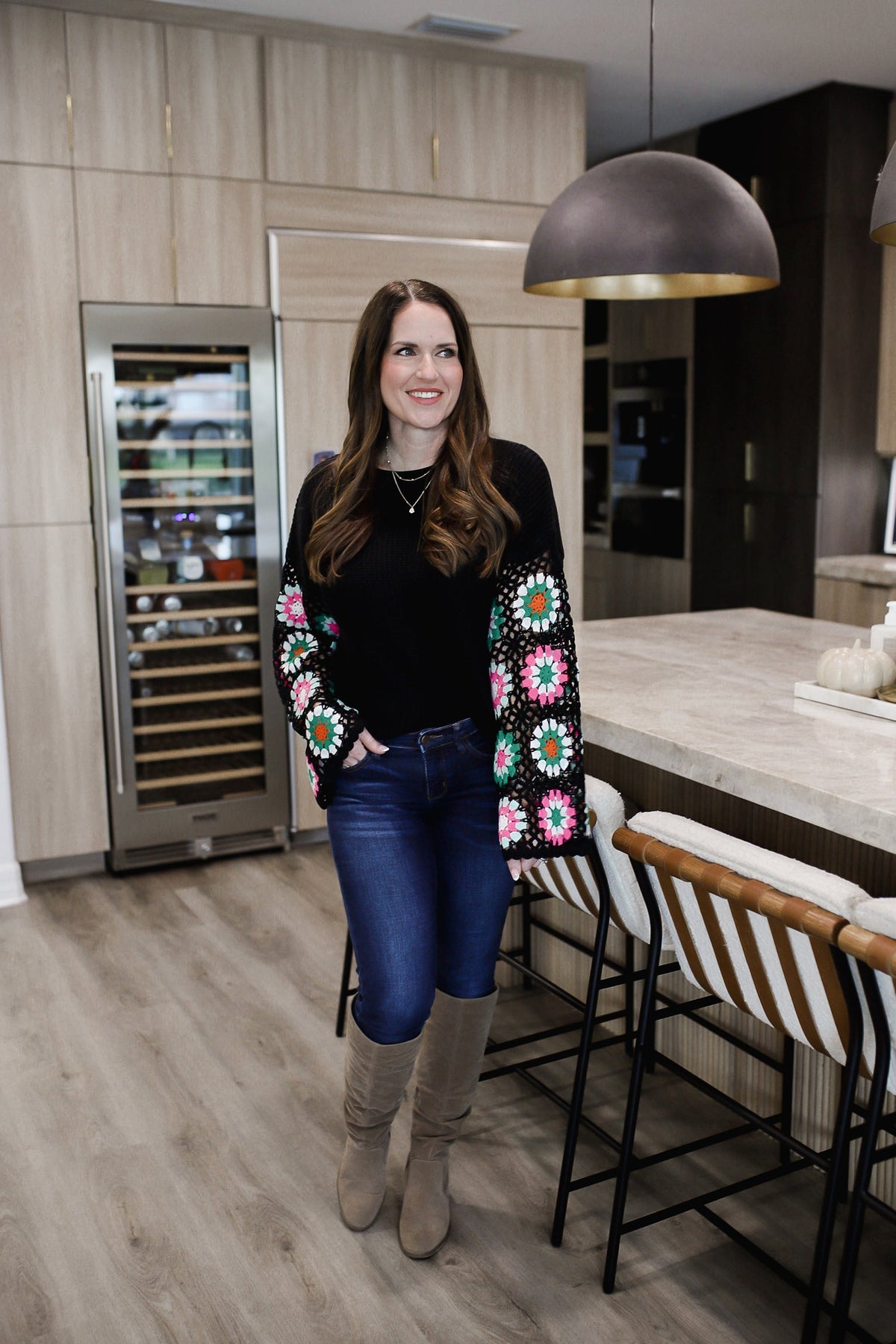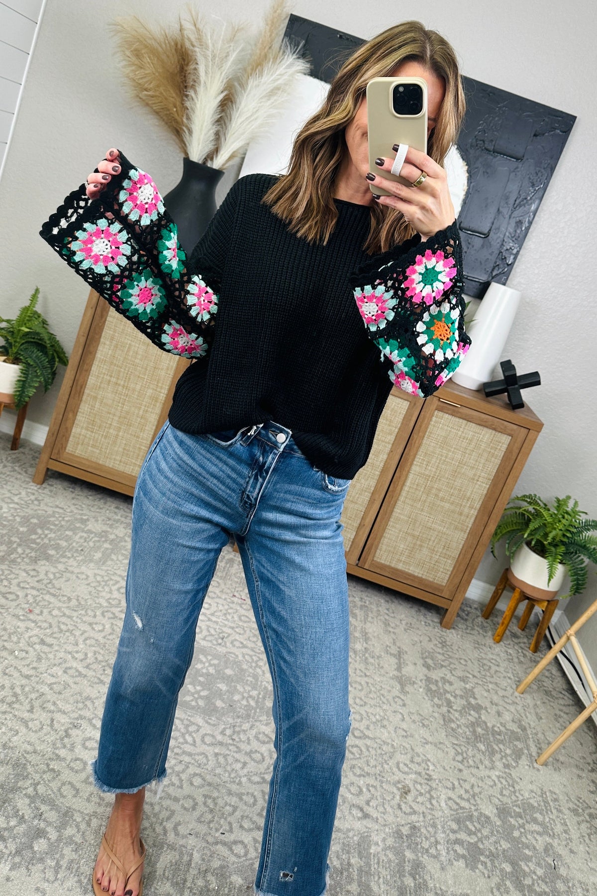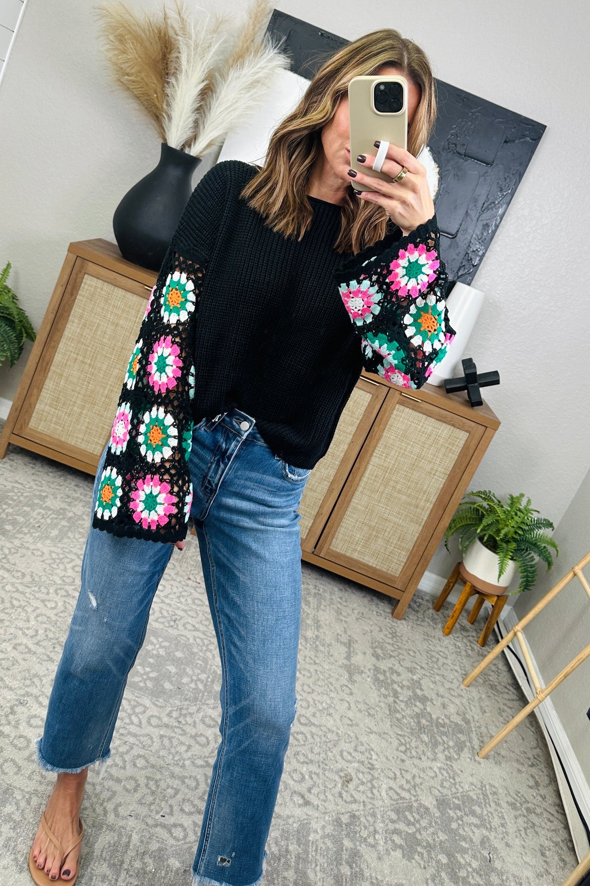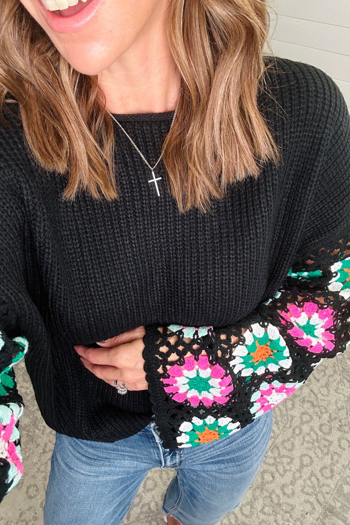 Get cozy and stylish with our Crochet Round Neck Long Sleeve Knit Top! Made with soft, high-quality knit material, this top features a trendy crochet round neck that adds a touch of uniqueness. Perfect for everyday wear, this top will keep you warm and fashionable all season long! The model is in the small, paired with Ainsleigh jeans.