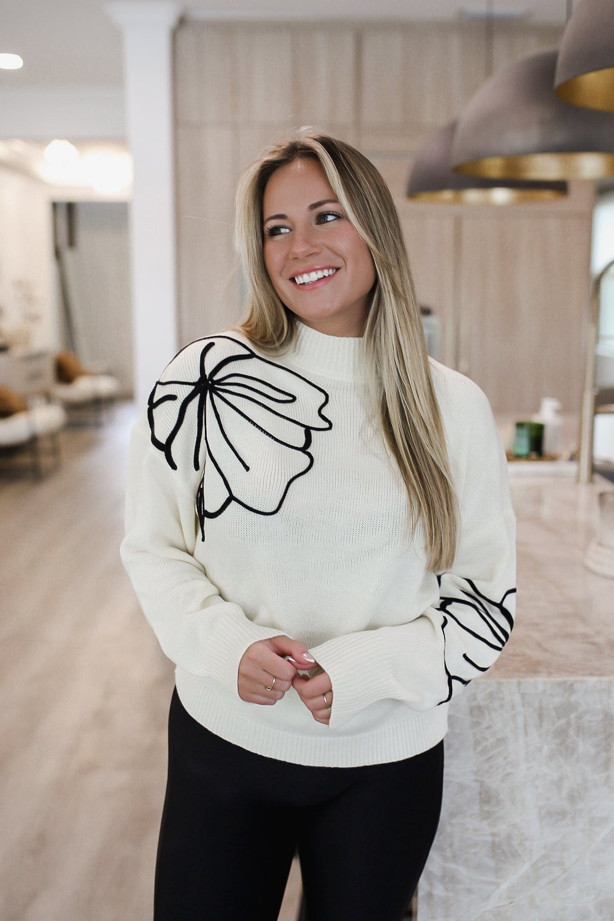Perfee Mock Neck Dropped Shoulder Long Sleeve Sweater