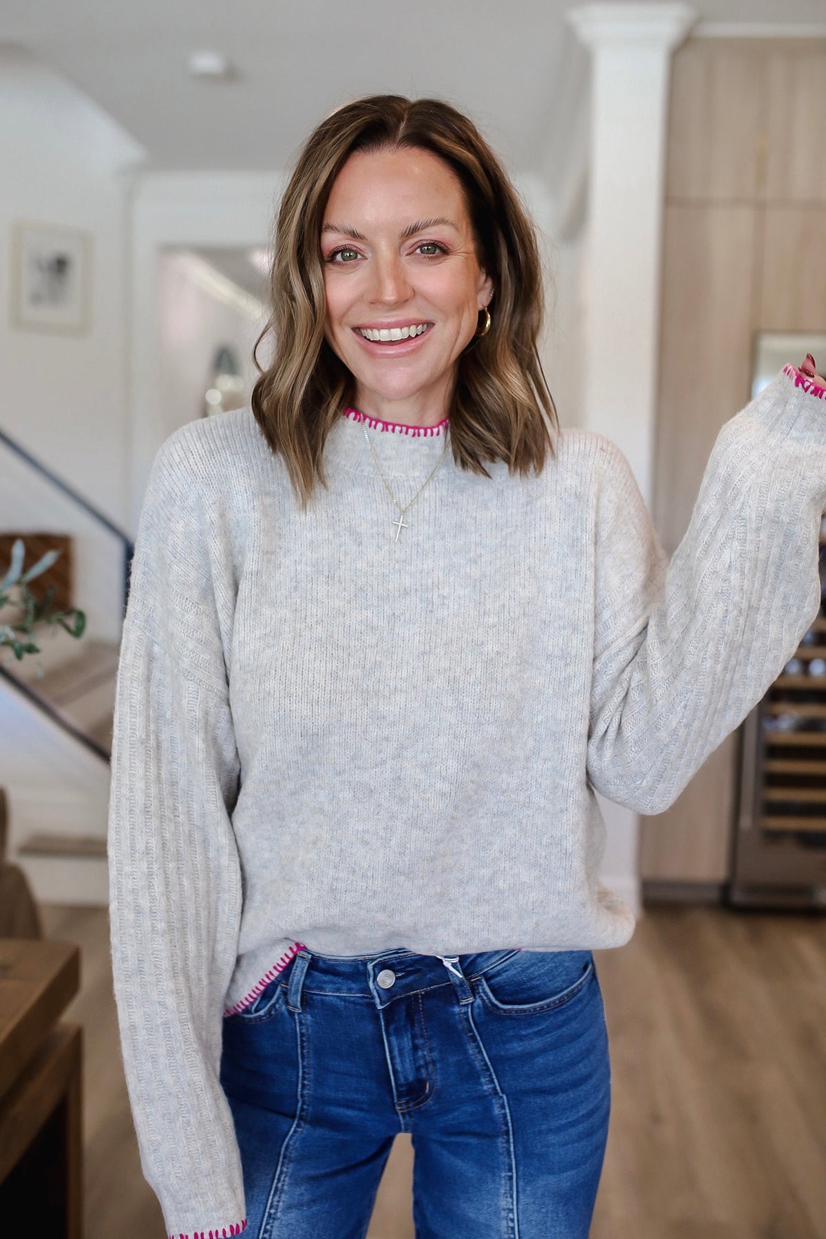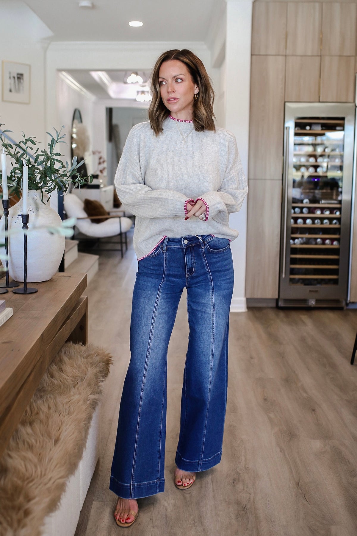 Model is in the small. Paired with Isla Trouser Hem Wide Leg Jeans