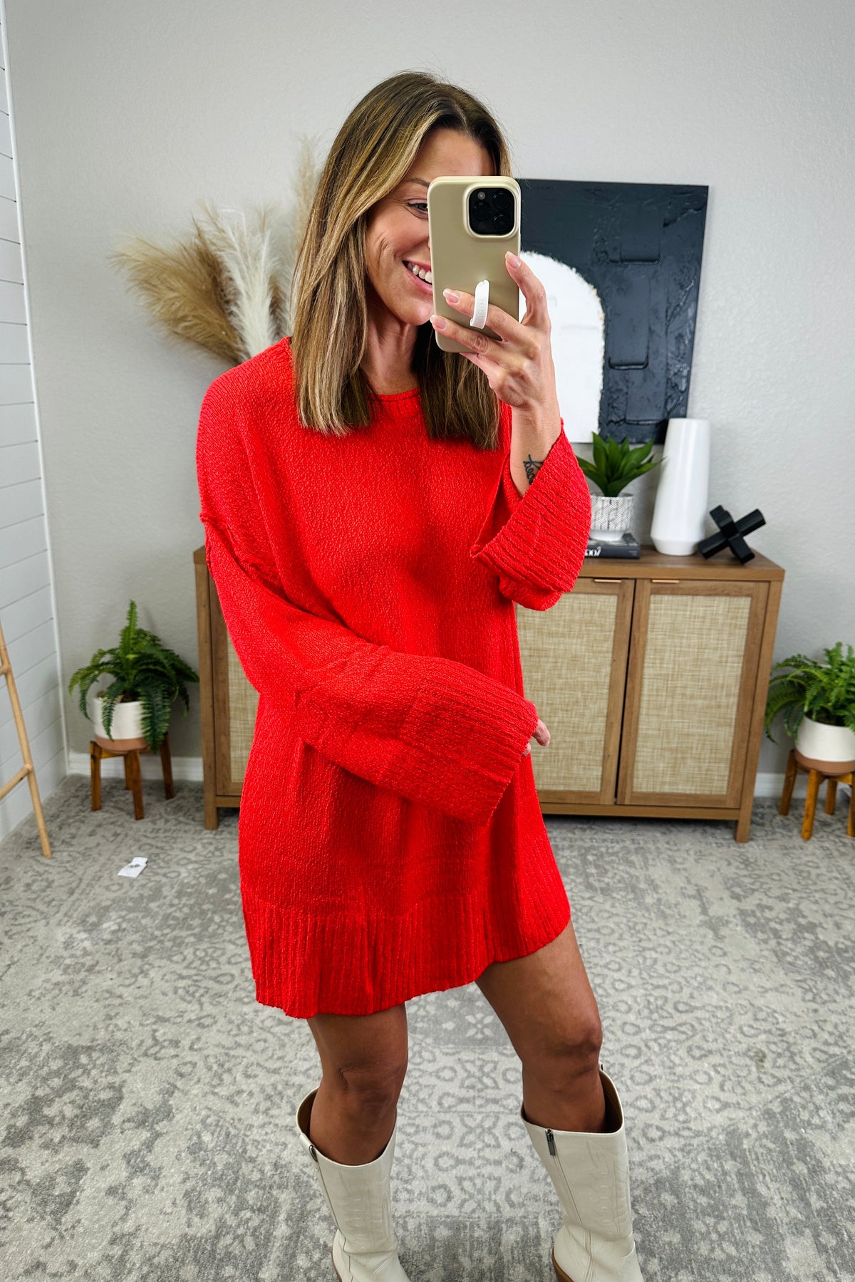 Unleash your comfy and cool side with our Dropped Shoulder Sweater Dress. With a relaxed fit and trendy design, you'll feel effortlessly stylish while staying cozy. Perfect for any occasion, this dress will become your go-to choice for ultimate comfort and fashion! The model is 5'9", size 4, wearing the medium for length.