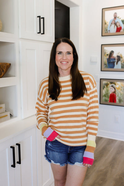 Angel Wings Warm Spice Striped Round Neck Sweater
