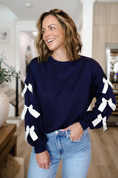 Bow-Detailed Sleeve Round Neck Sweatshirt