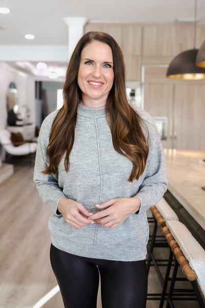Zenana Melange Front Seam Round-Neck Sweater