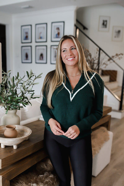 Perfee Contrast Half Zip Long Sleeve Sweater