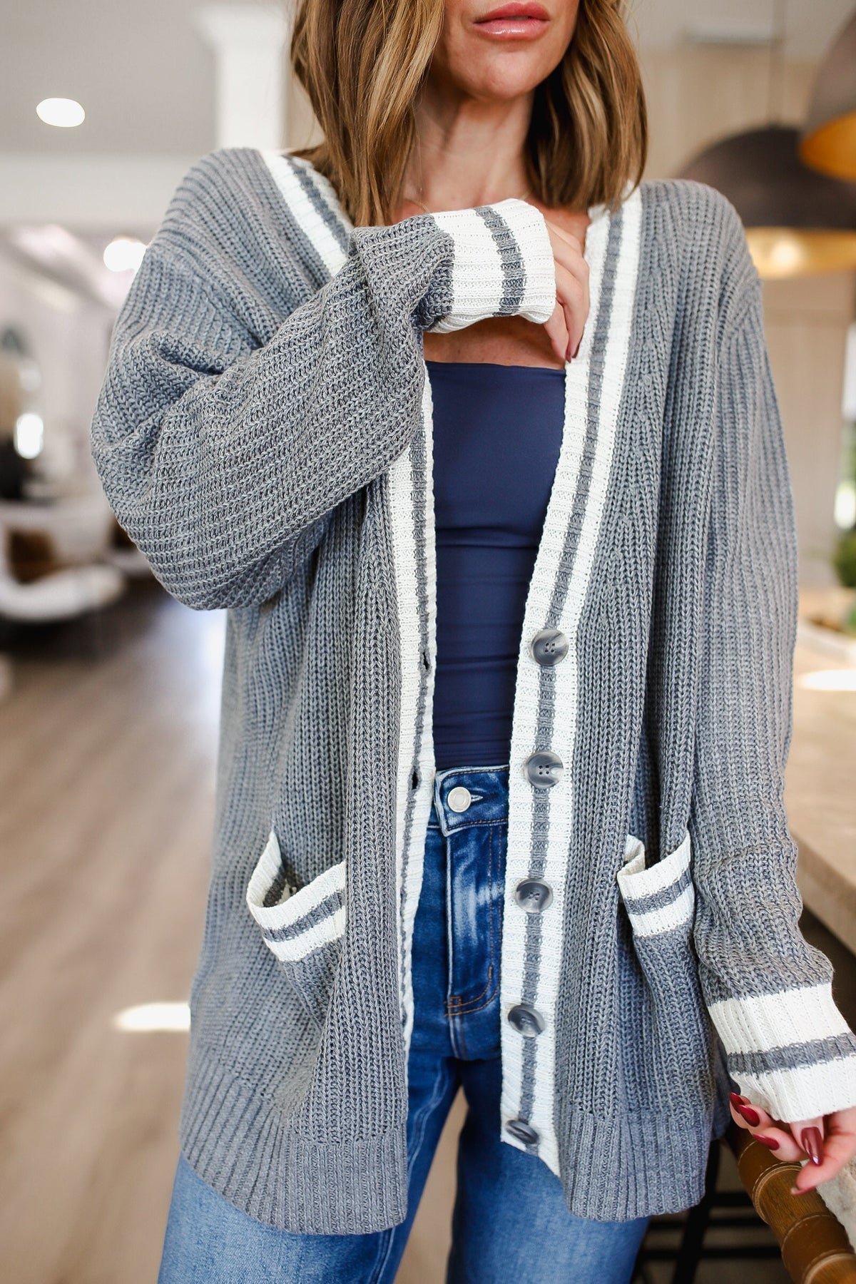 Wrap yourself in effortless comfort with the Cozy Escape Long Sleeve Solid Knit Cardigan. This lightweight knit features a playful contrast lining and handy side pockets, perfect for stashing your essentials or keeping your hands warm. Designed with an open front for easy layering, it’s your go-to piece for cozy adventures and laid-back days.