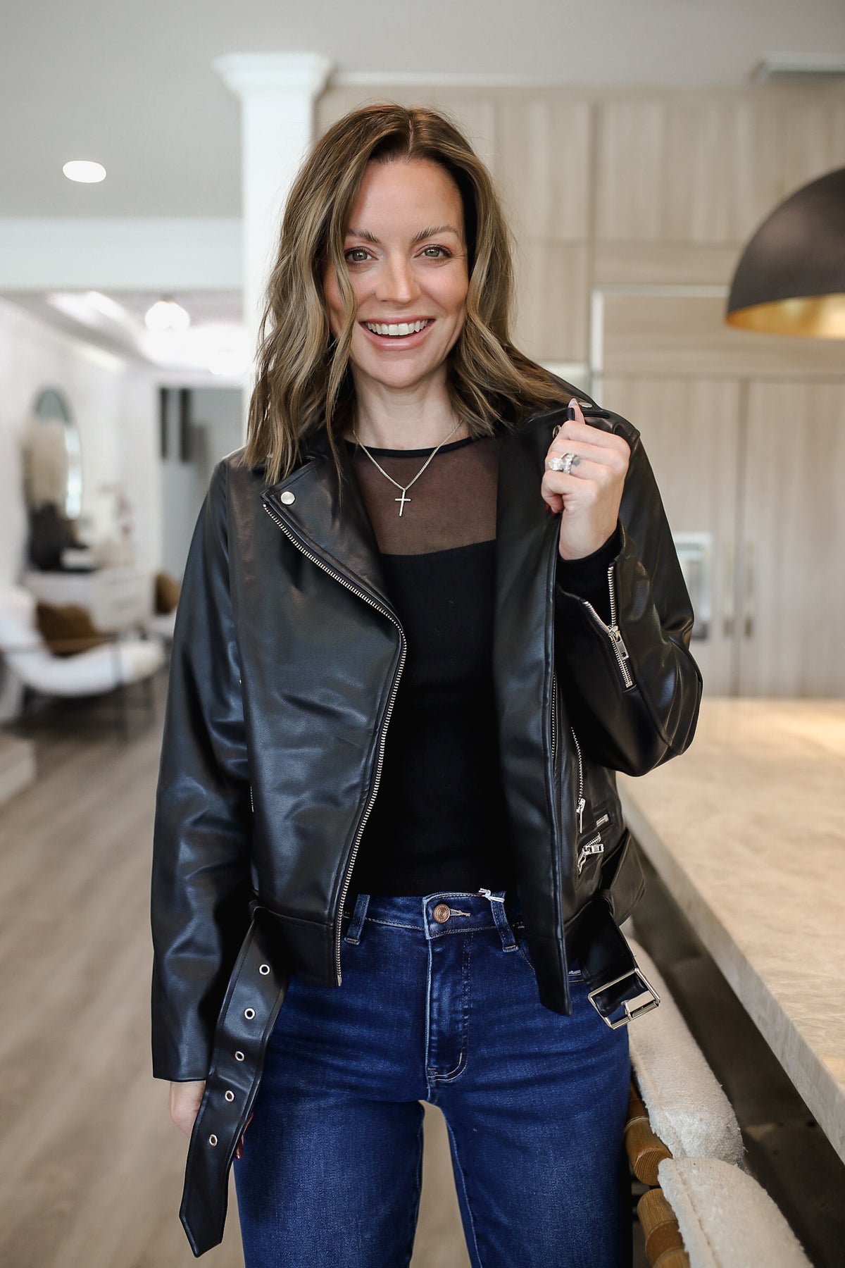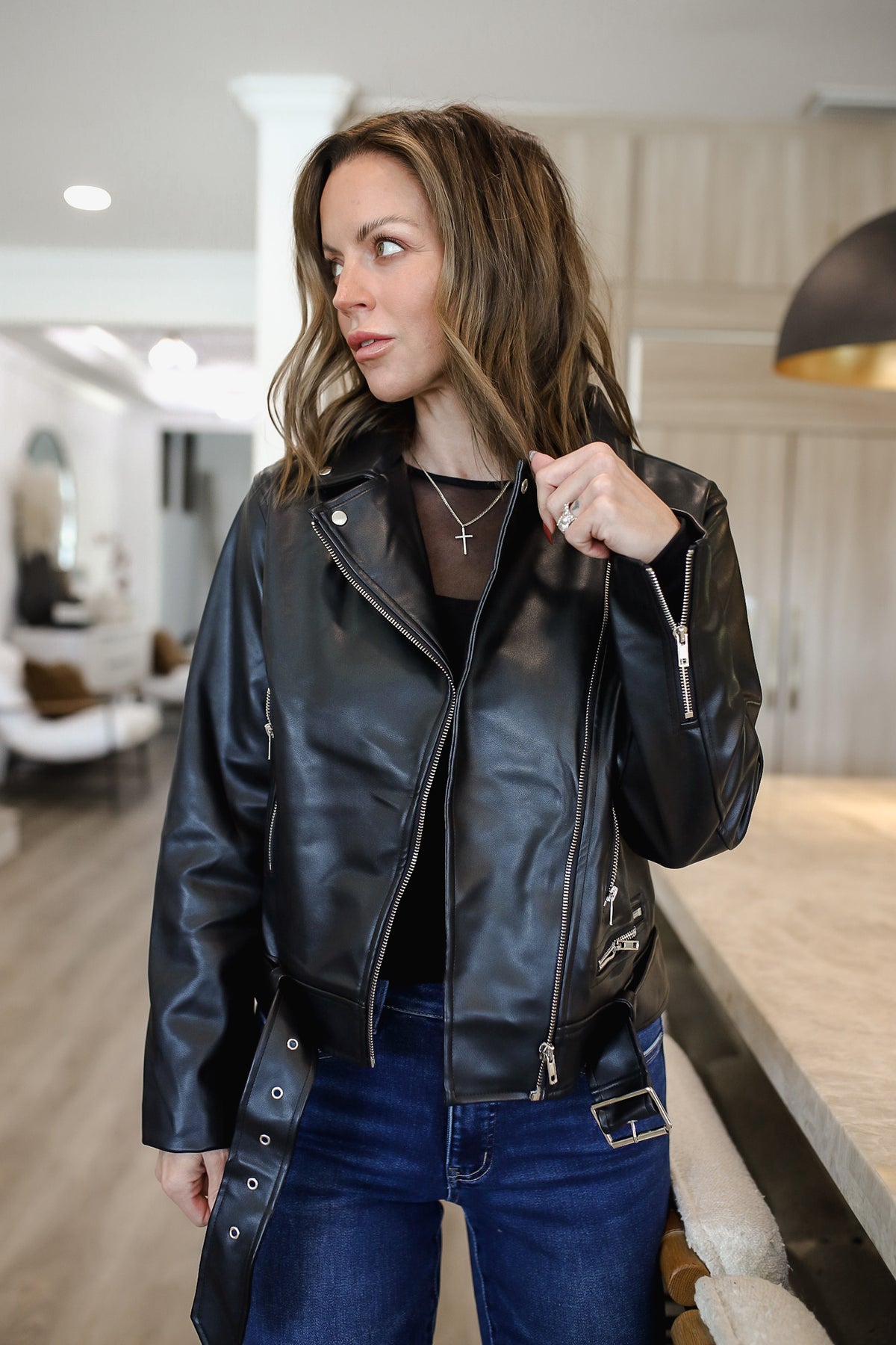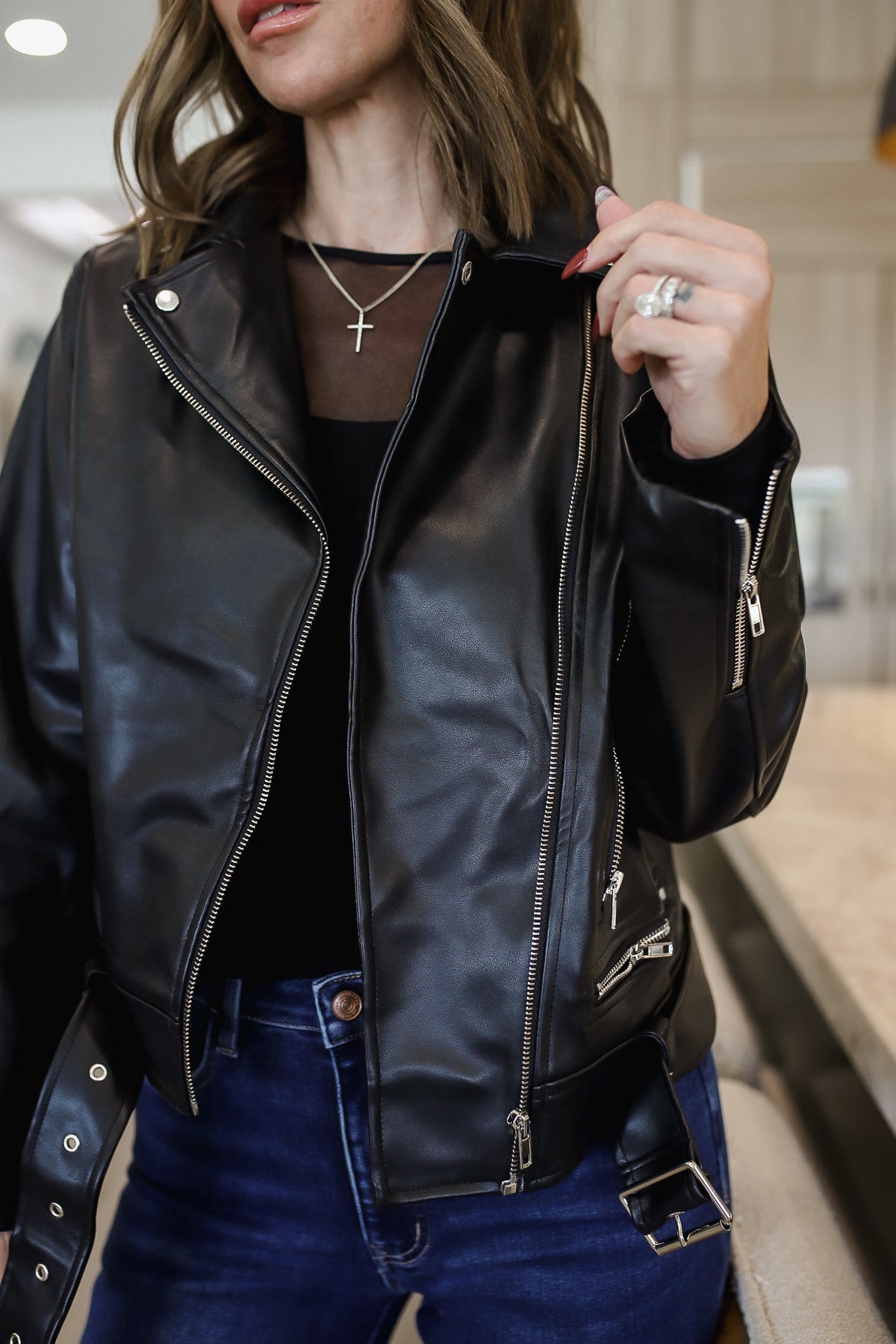 Introducing the Tough Chic Long Sleeve Solid Knit Jacket—your new go-to for effortless edge! This playful piece combines the cozy comfort of a knit with the bold attitude of lightweight faux leather. Zip up the front, cinch the waist with the belt detail, and stash your essentials in the zippered pockets. Whether you're channeling cool-girl vibes or adding attitude to your everyday look, this jacket delivers style with a wink. The perfect blend of tough and tender, this is the jacket that makes you feel like the best version of yourself. PREORDER