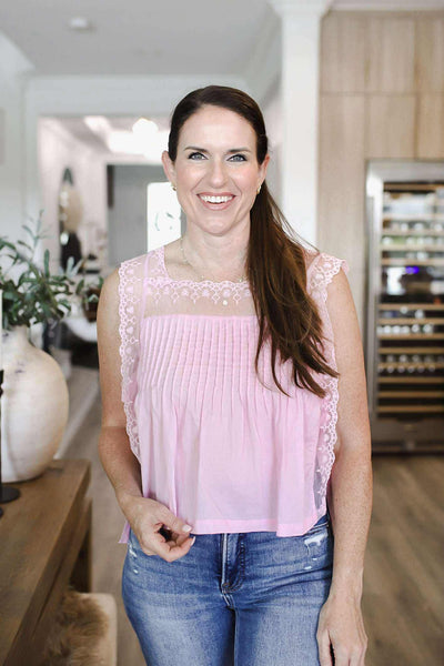 Lace Trim Sleeveless Summer Blouse