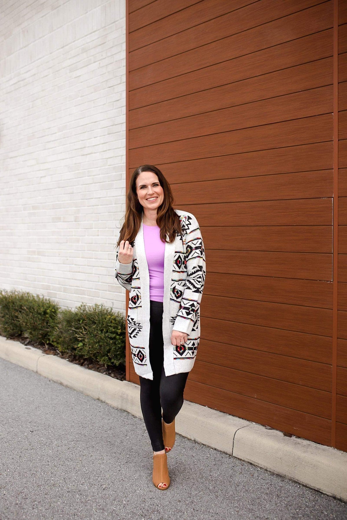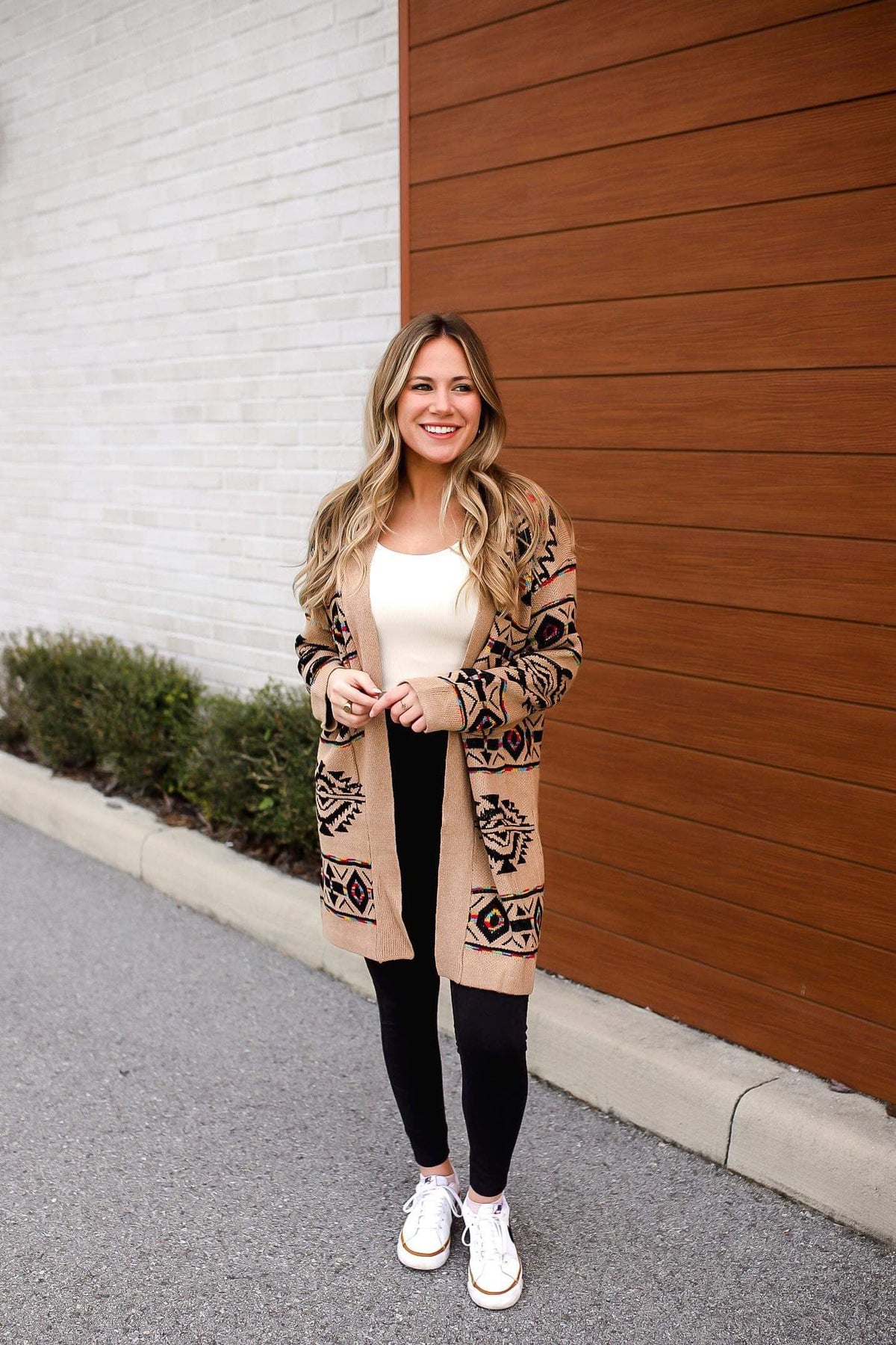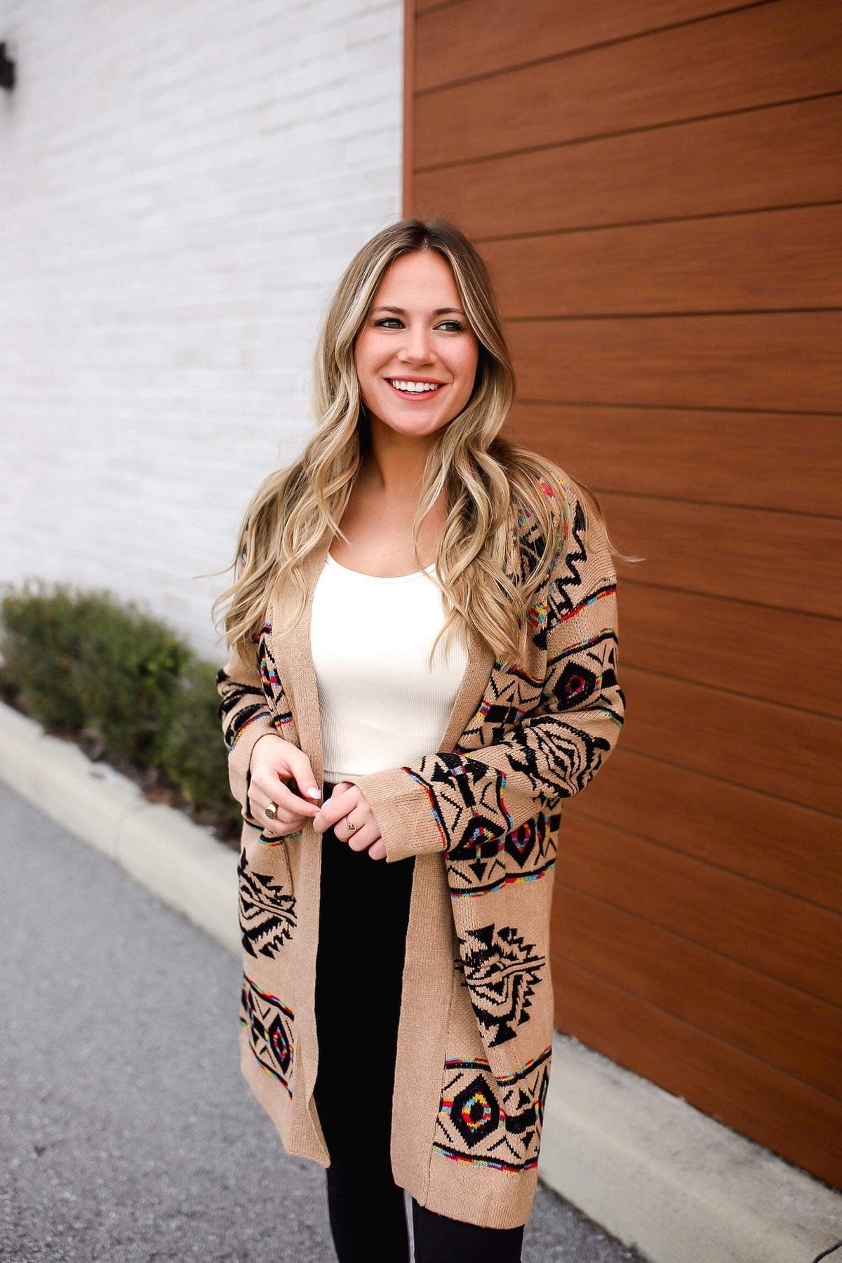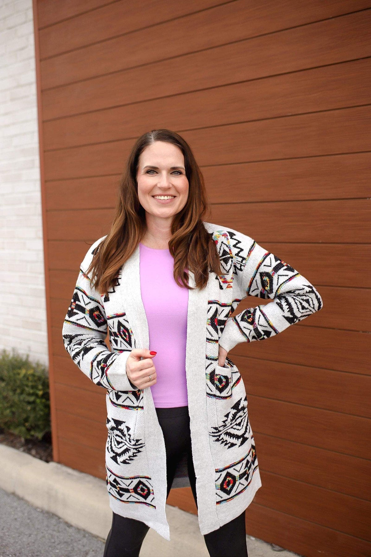 Angel Wings Pocketed Geometric Open Front Dropped Shoulder Cardigan