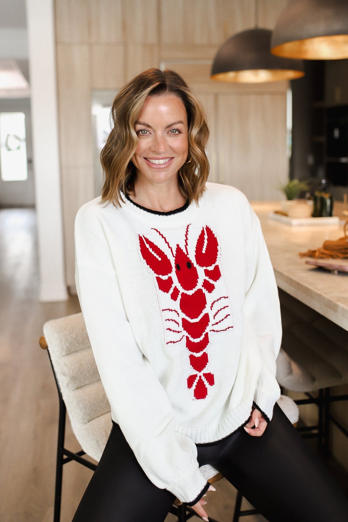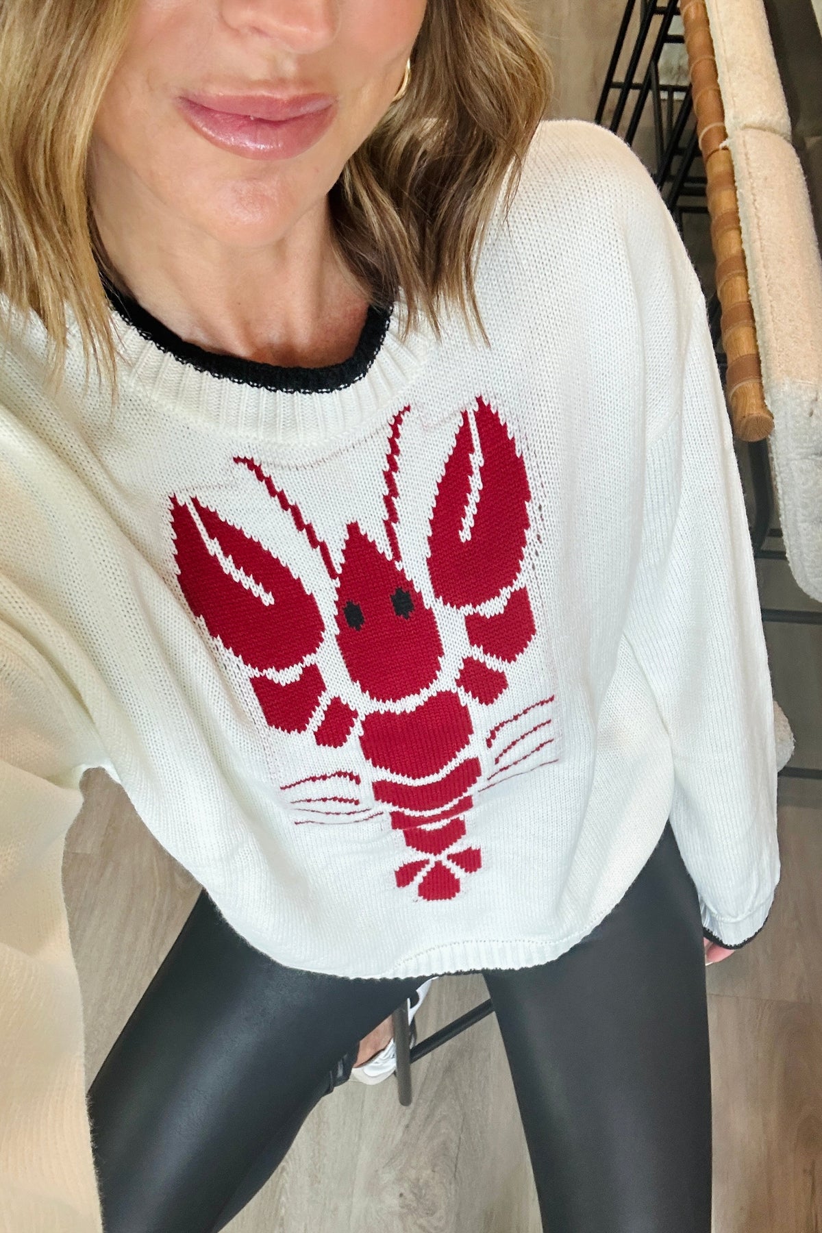 Full Size Lobster Contrast Trim Round Neck Sweater Plus Size