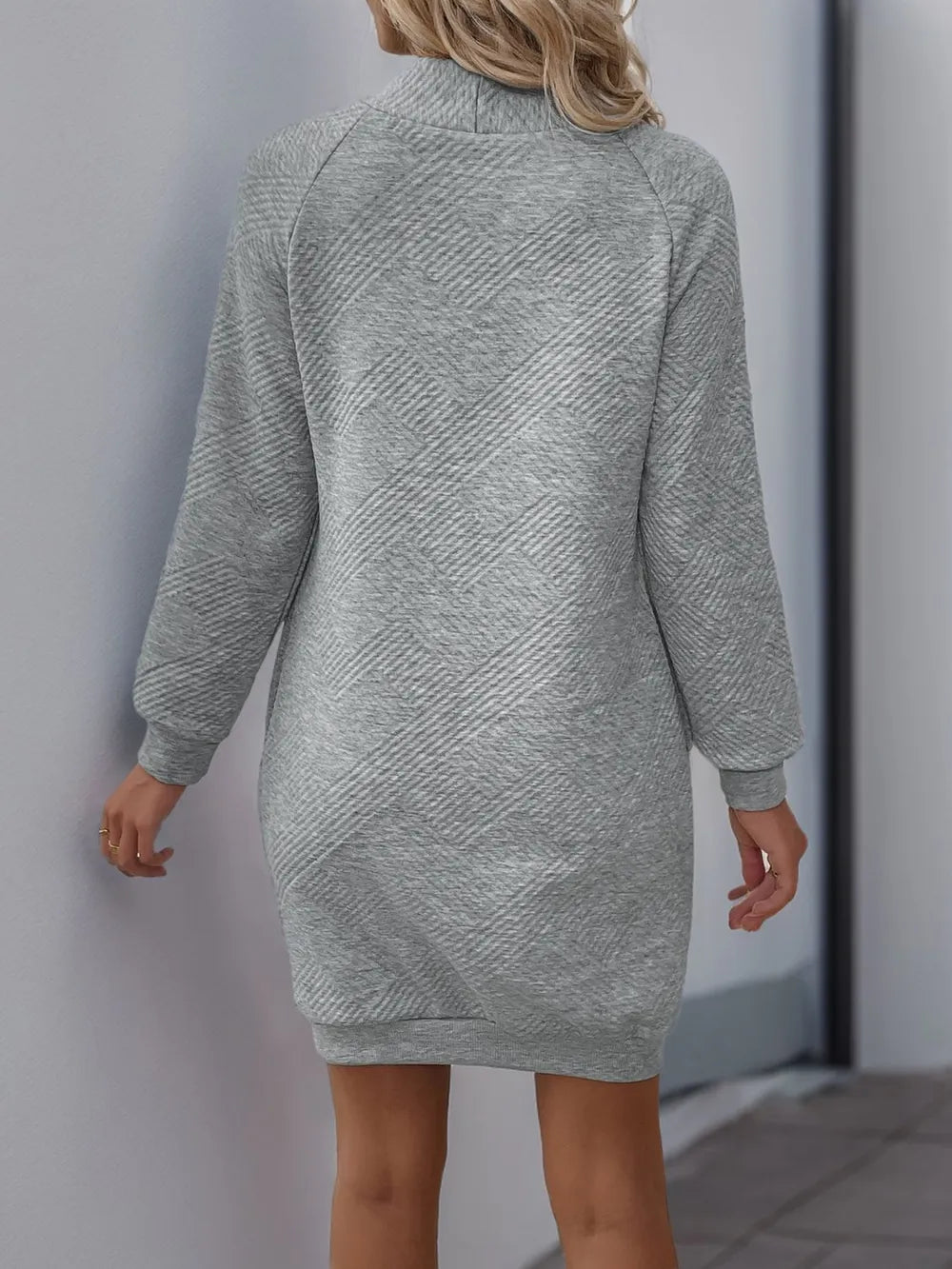 Perfee Texture Mock Neck Long Sleeve Mini Dress